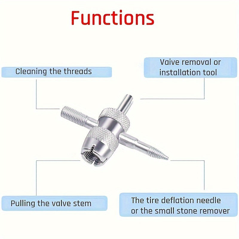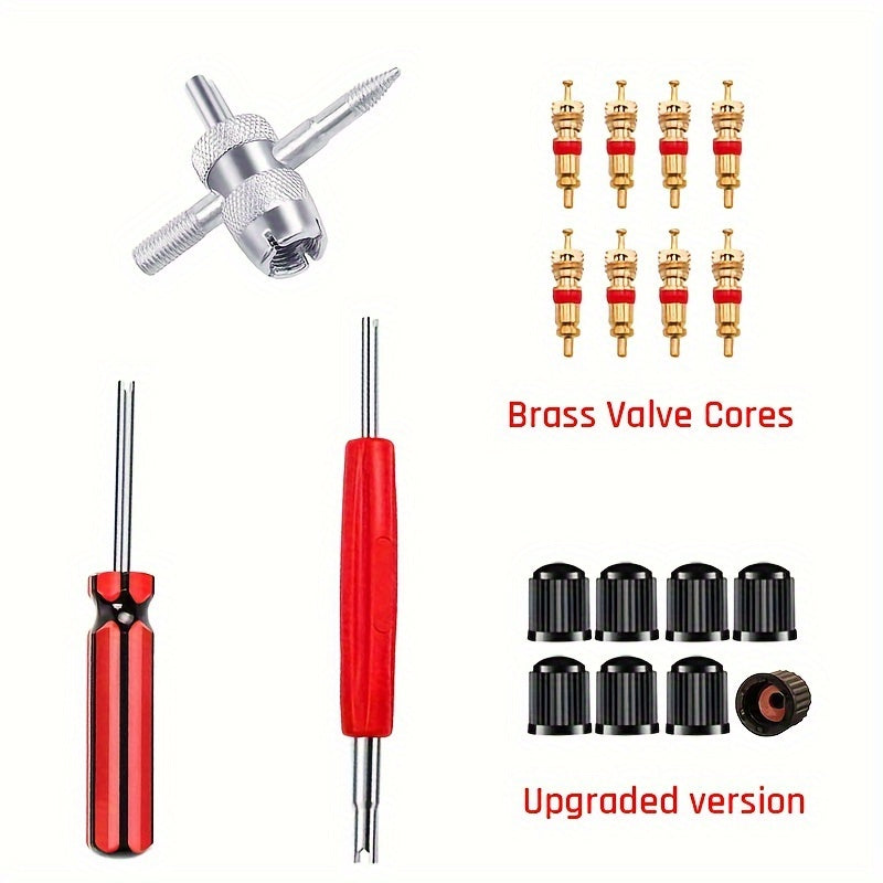 Набор инструментов для ремонта кондиционеров, включает в себя двусторонний гаечный ключ, 8 латунных сердечников клапанов и 8 улучшенных пластиковых колпачков. Изготовлен из металла и не требует электричества.