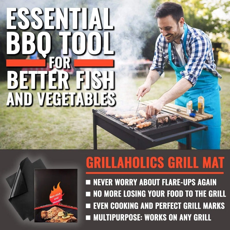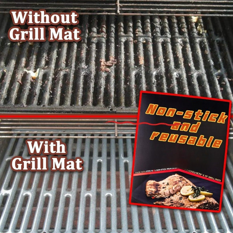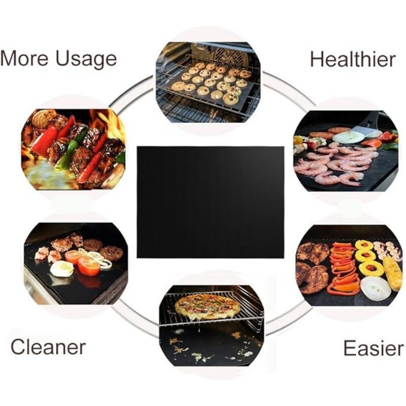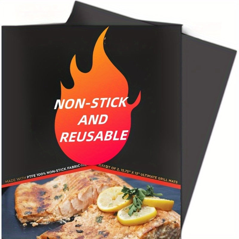 Набор из 2 многоразовых антипригарных решетчатых ковриков для гриля на газу, угле, электрическом, черный