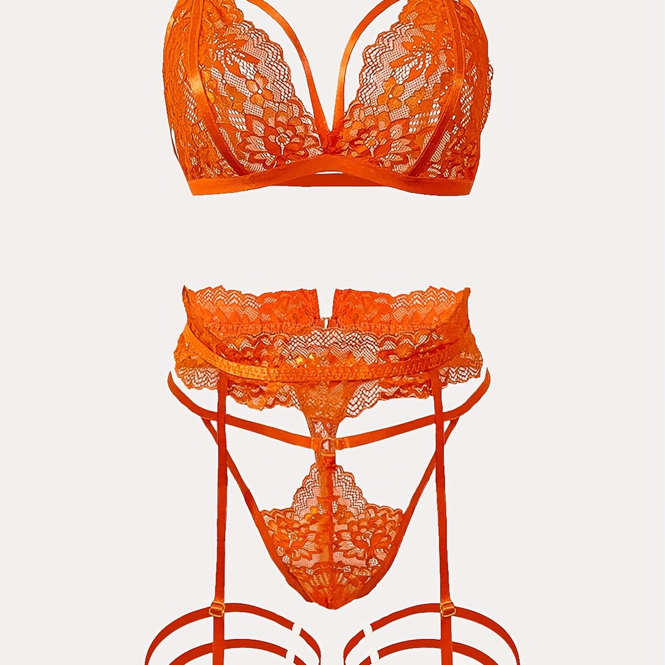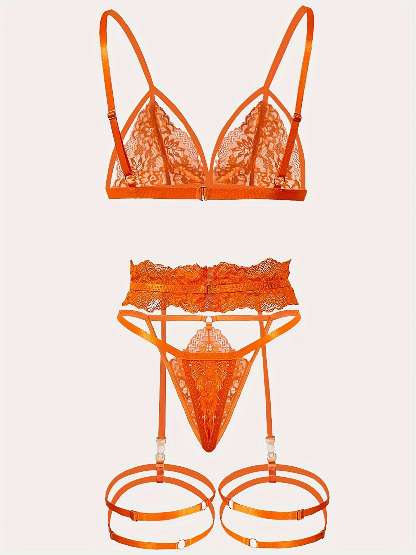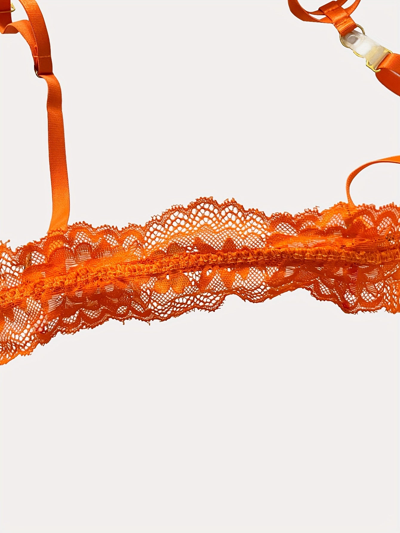 Сексуальный комплект кружевного нижнего белья на Конингсдень с бюстгальтером, поясом для чулок и стрингами