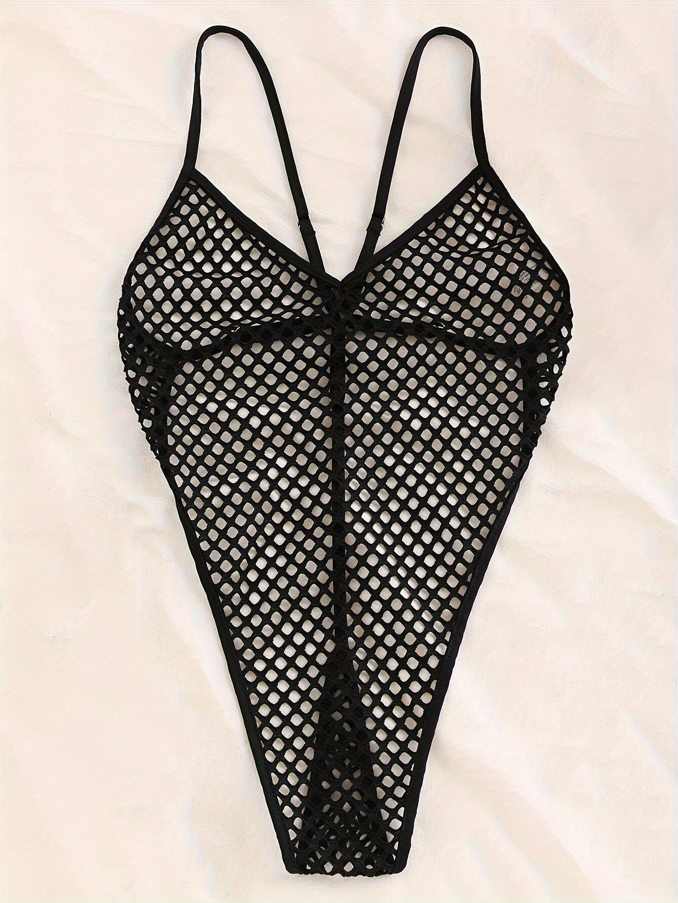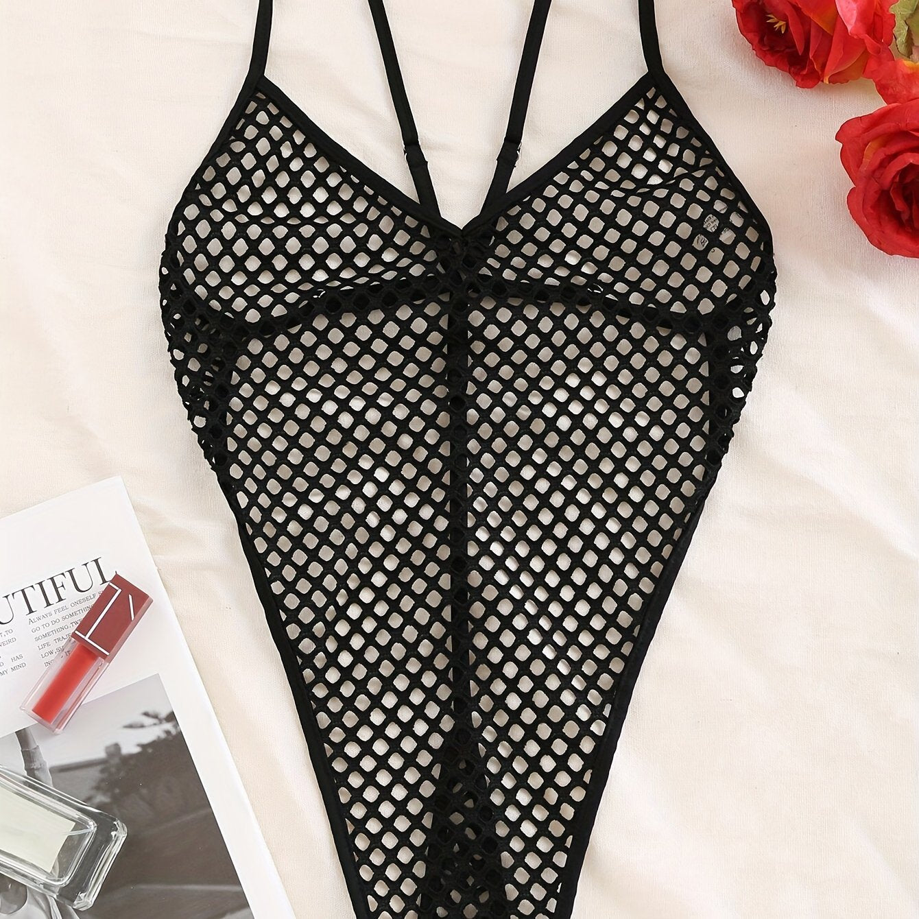 Сексуальный однотонный жаккардовый сетчатый боди с вырезом на спине для соблазнительного нижнего белья.