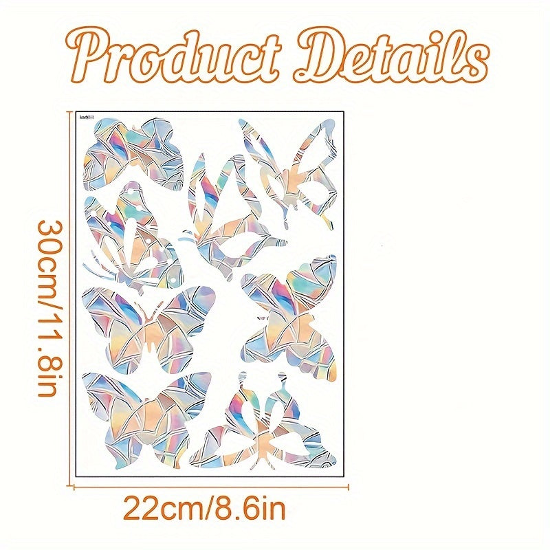 Блестящая радужная призматическая бабочка-ловец солнца - антистатичный декор для окон из ПВХ, наклейка на стекло для предотвращения столкновений дома и в офисе