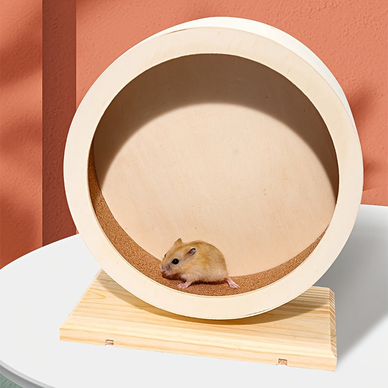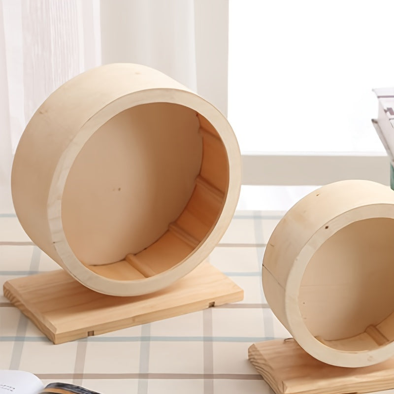 Безмолвное деревянное колесо для упражнений для мелких домашних животных способствует здоровым физическим нагрузкам и умственной стимуляции. Идеально подходит для хомяков, песчанок, мышей и морских свинок.