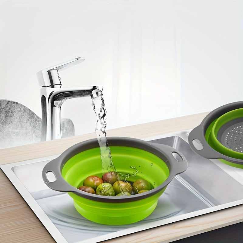 Складной силиконовый дуршлаг с ручкой — идеально подходит для мытья и сушки фруктов, овощей и макаронных изделий — кухонный гаджет для легкой уборки и готовки