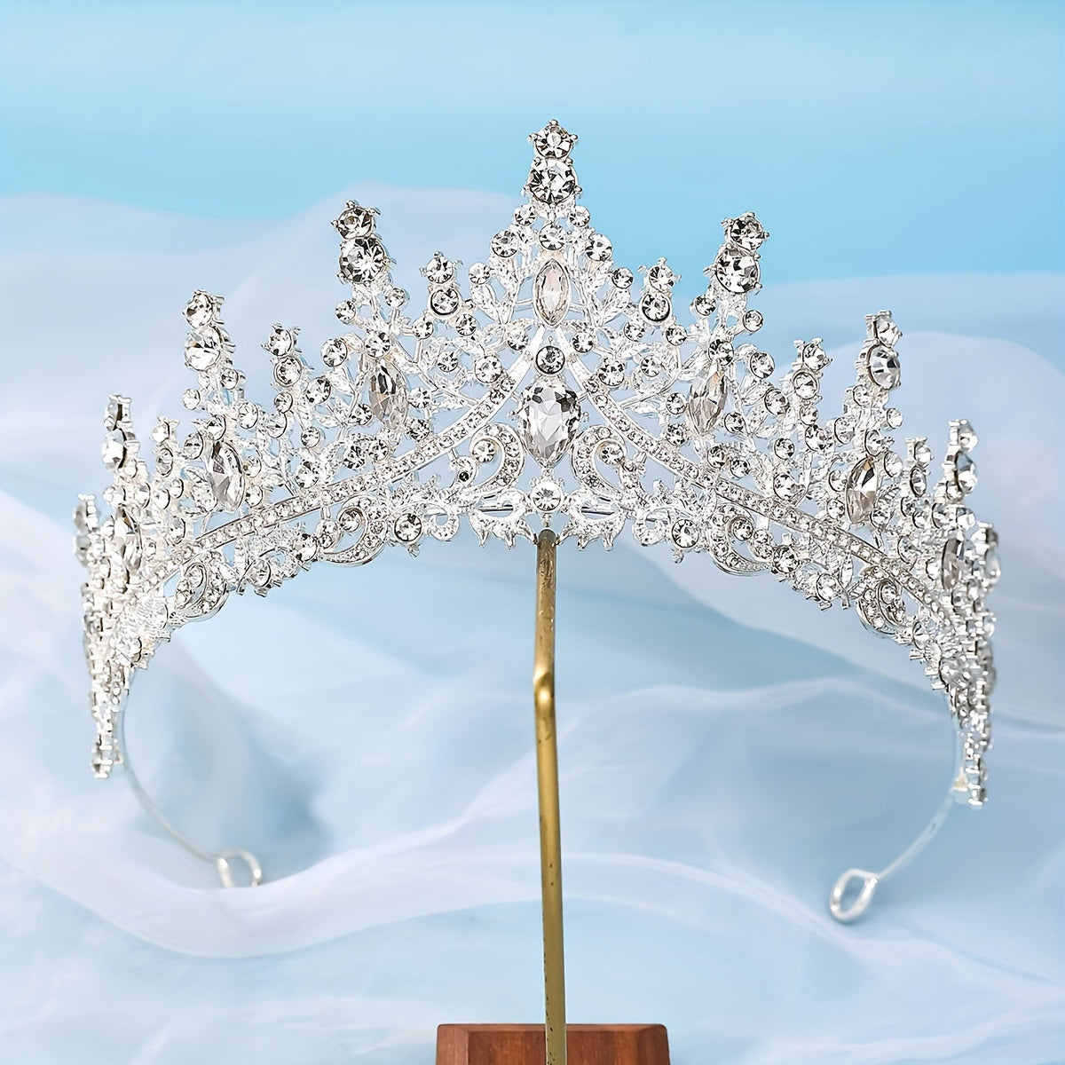 Серебряная сплавная тиара с стразами для элегантных свадеб и вечеринок.