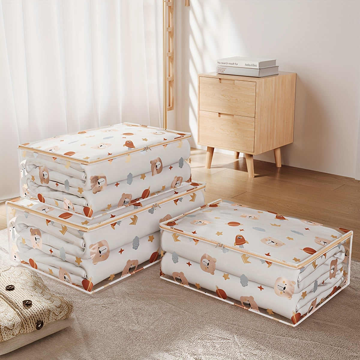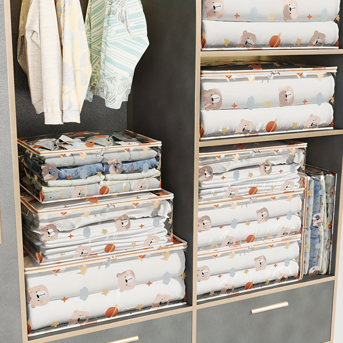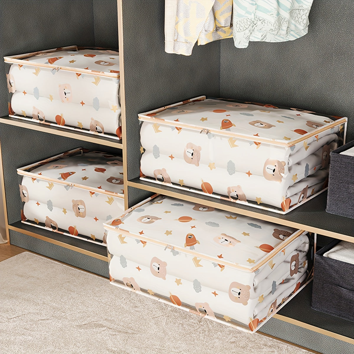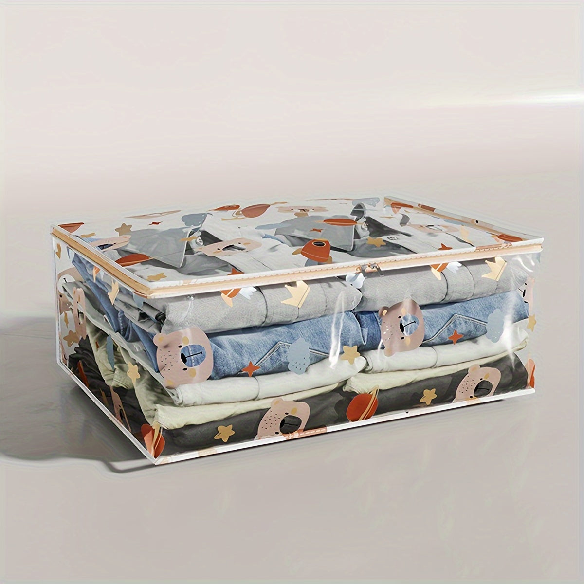 Единая большая прозрачная сумка для хранения одежды и игрушек - пылезащитный полиэстеровый органайзер с печатным дизайном, незавершенный стиль, идеален для 14 лет и старше, с возможностью самостоятельного использования.