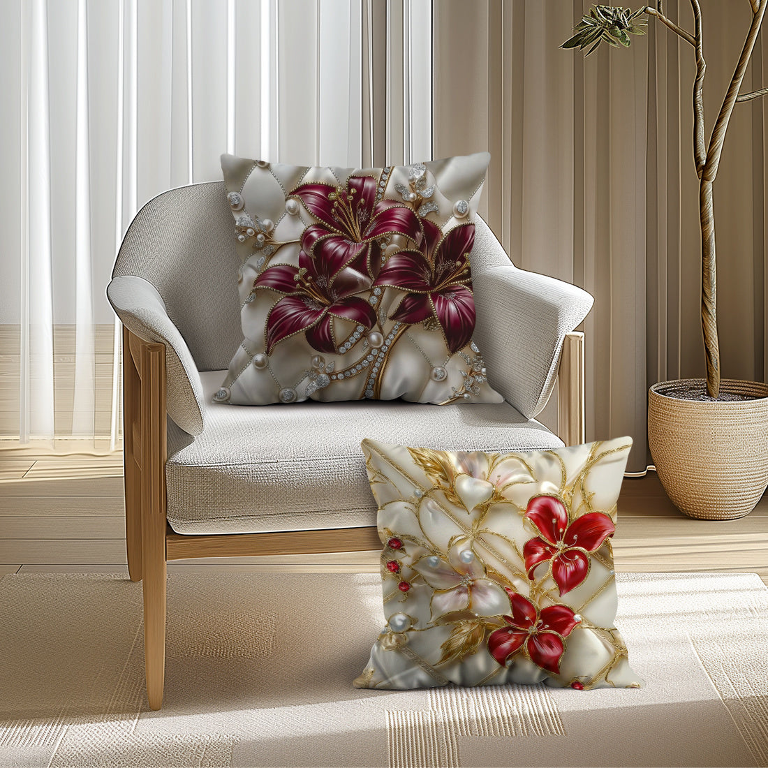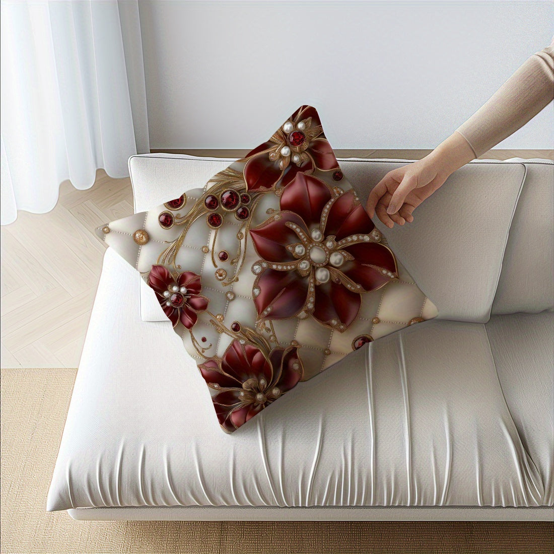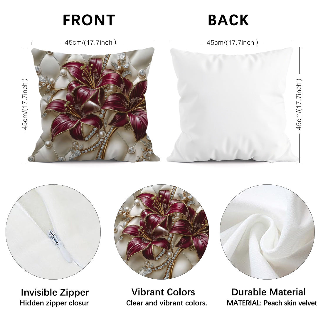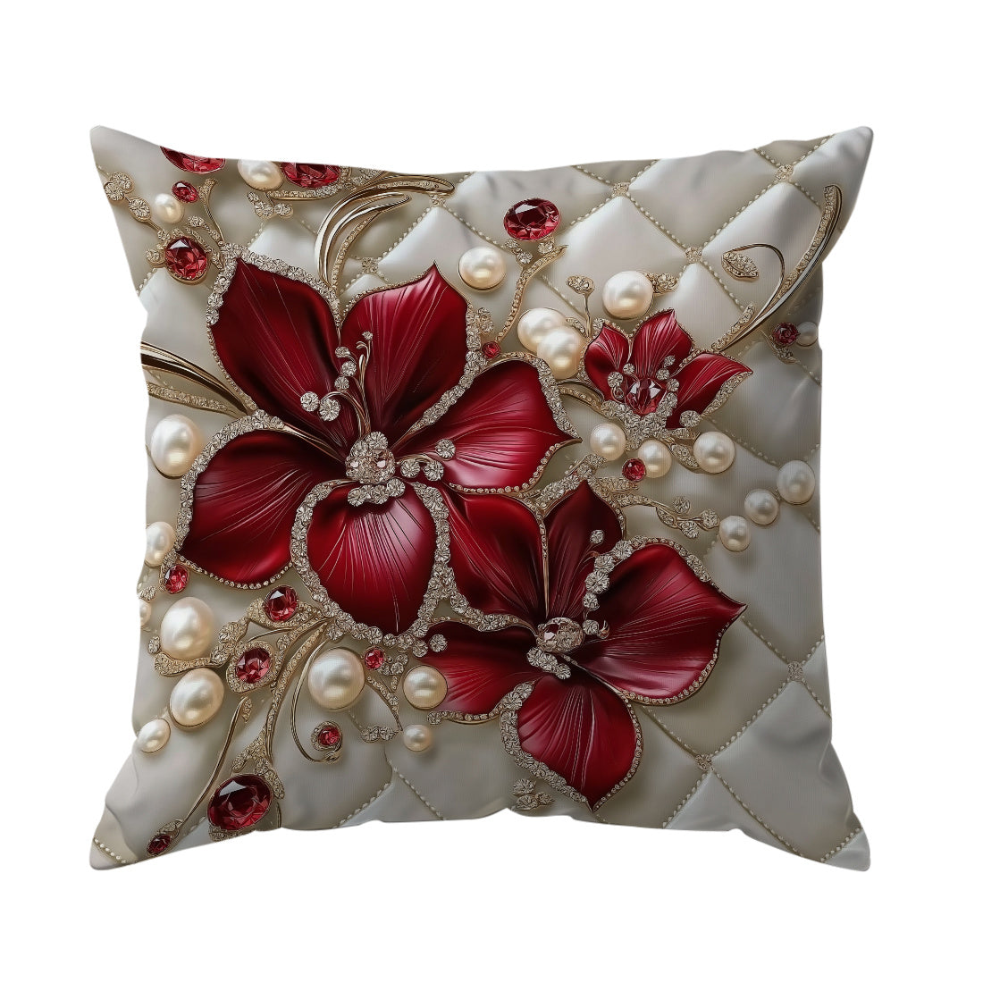 Односторонняя наволочка для подушки с 3D цветочным перламутровым дизайном, выполненная из материала персиковая кожа, размер 45*45 см.