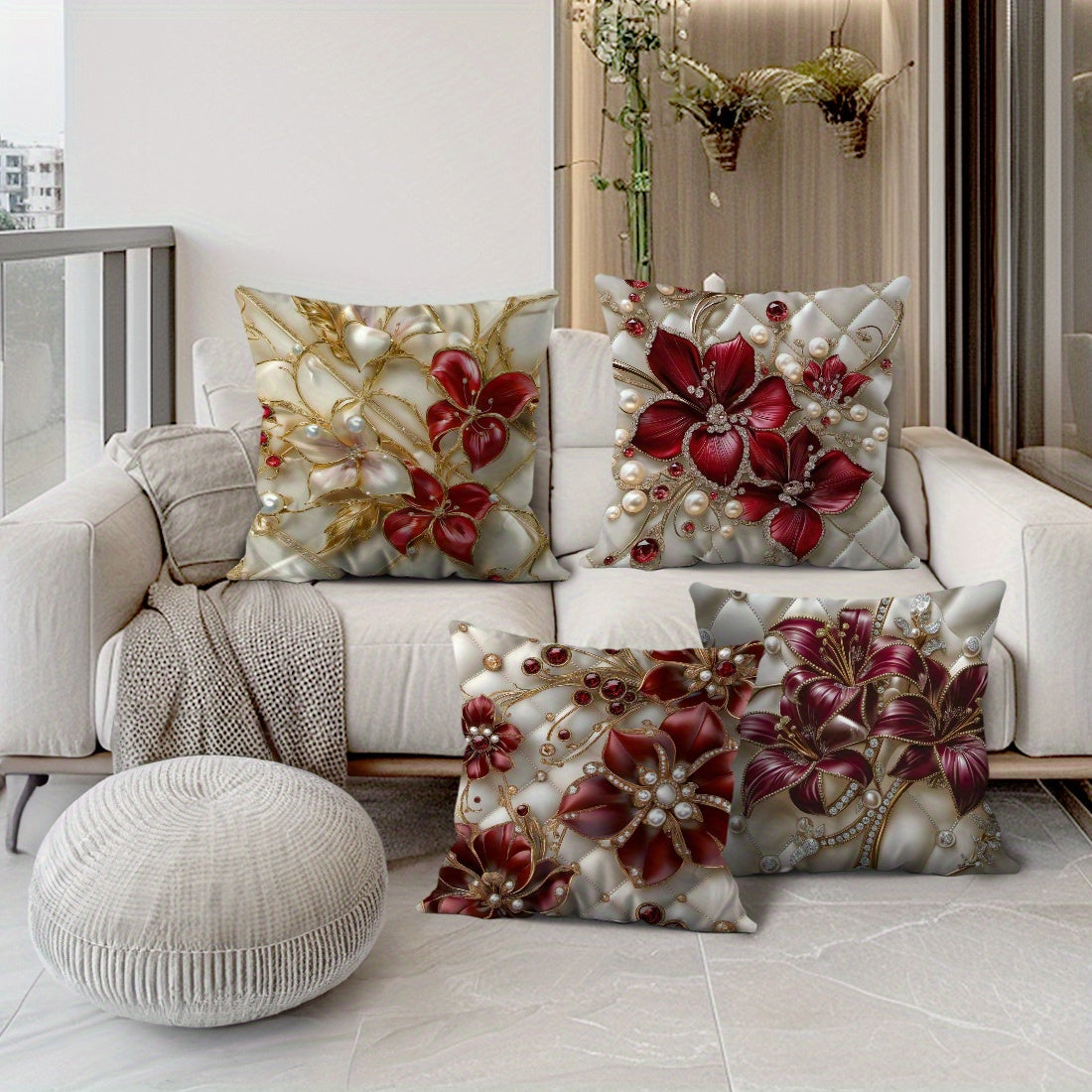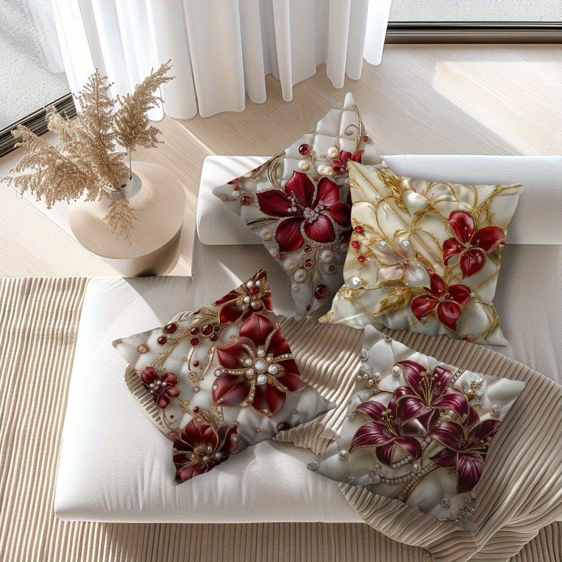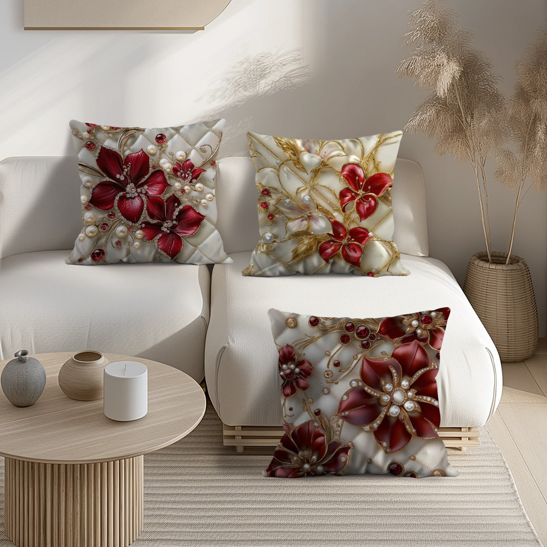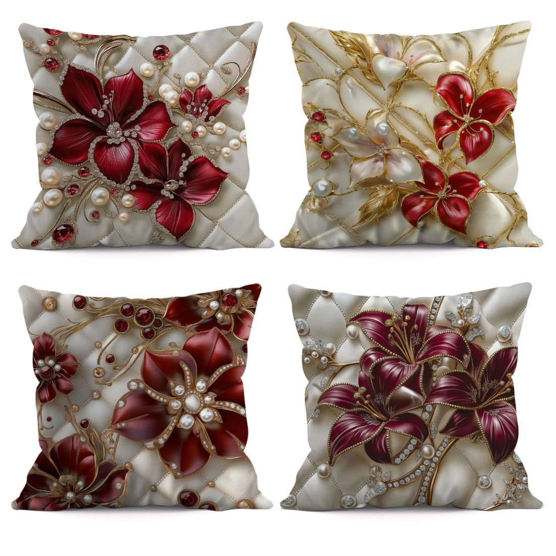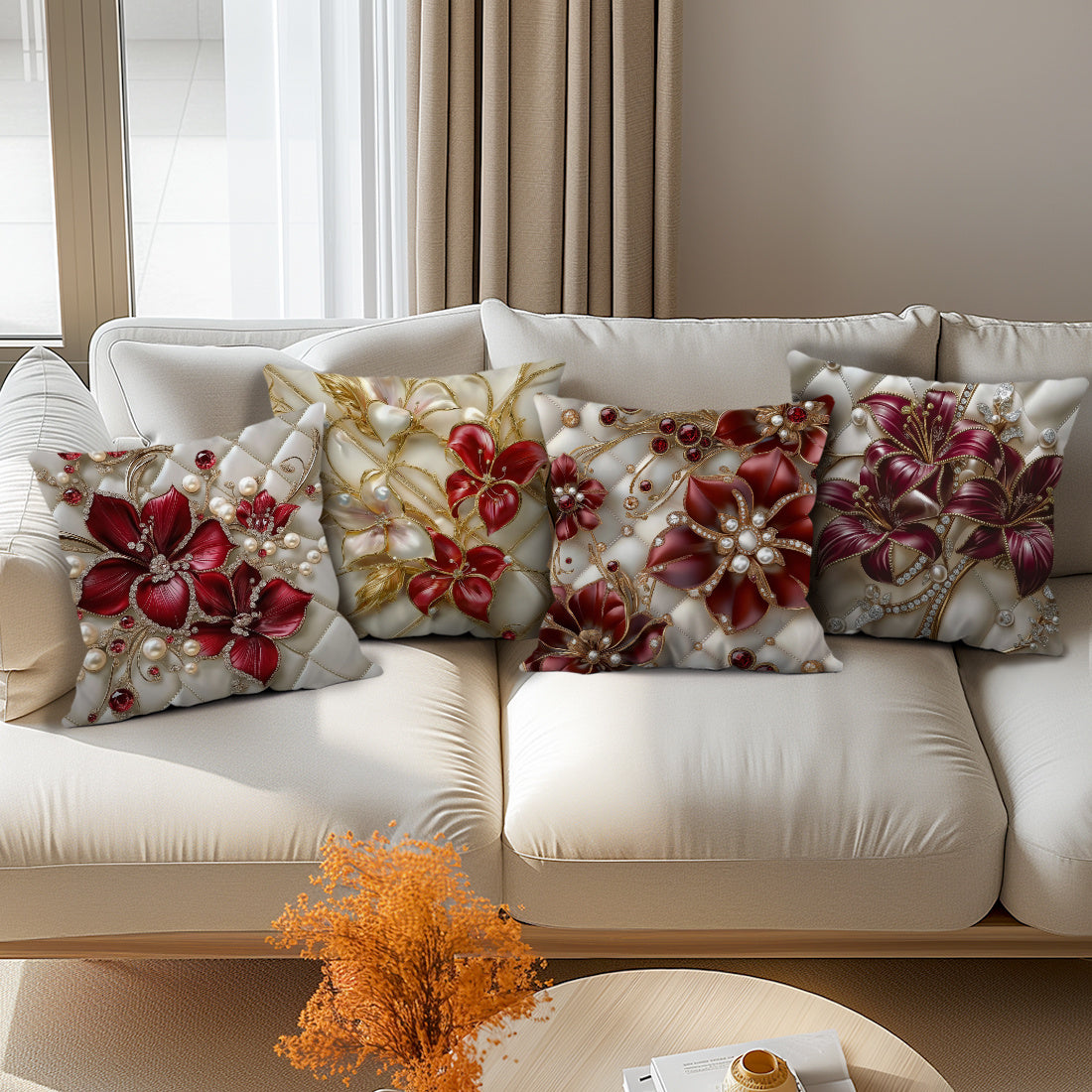Односторонняя наволочка для подушки с 3D цветочным перламутровым дизайном, выполненная из материала персиковая кожа, размер 45*45 см.