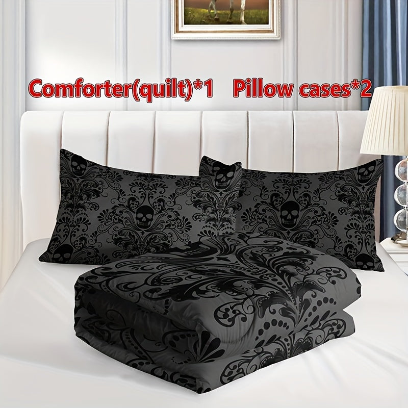 Комплект одеял с черепом и цветочным узором, 3 предмета, легкий, дышащий, летний постельный комплект для дома или общежития