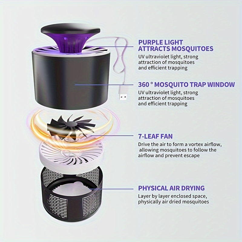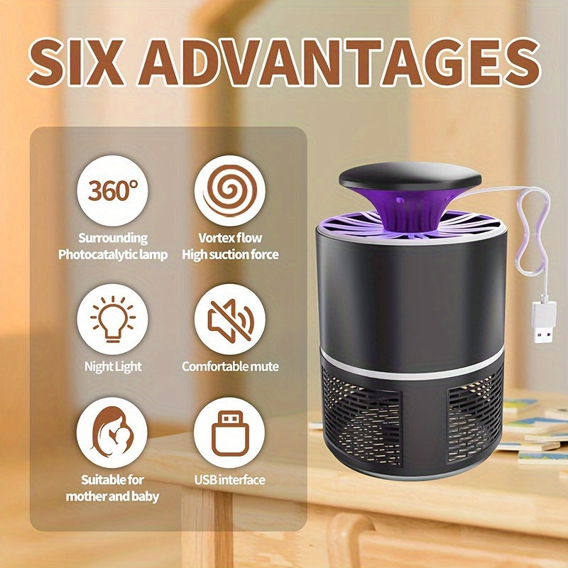 Черная USB-лампа-отпугиватель комаров с низким уровнем шума, автоматическая, безопасная для использования внутри помещений, для детей и пожилых