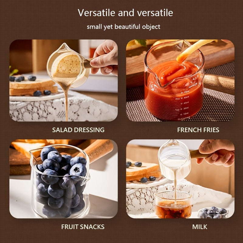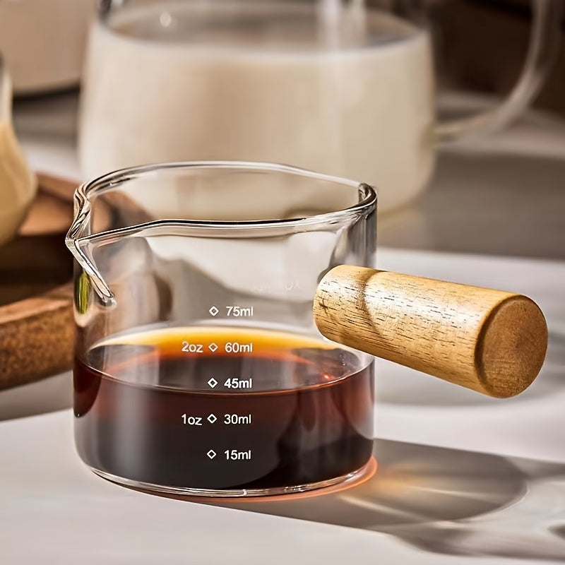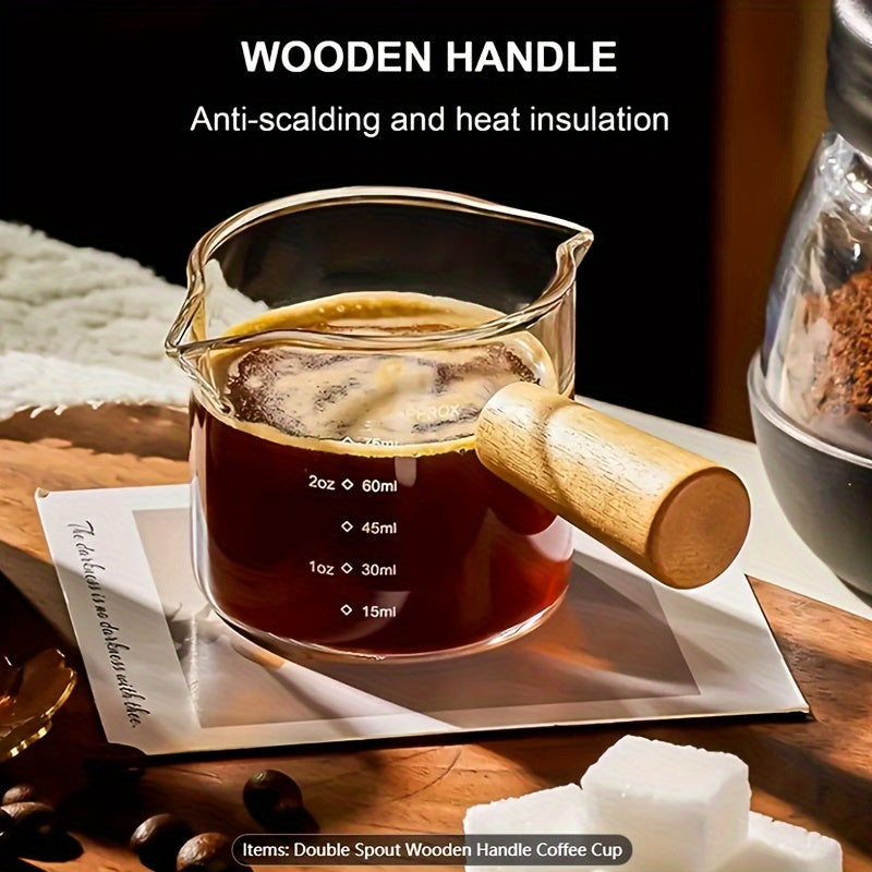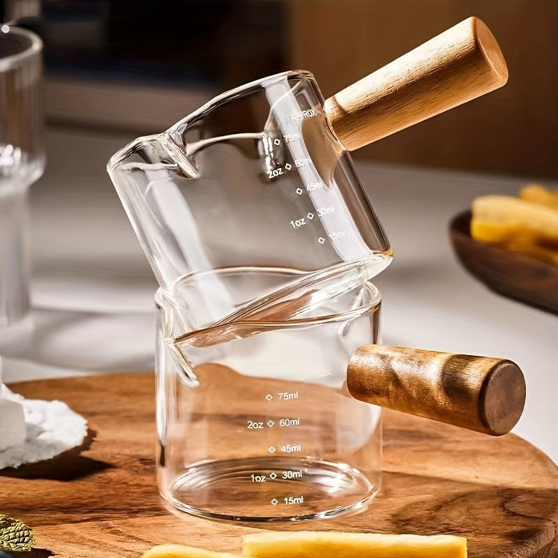 2oz термостойкая стеклянная мерная чашка с деревянной ручкой и двойными носиками
