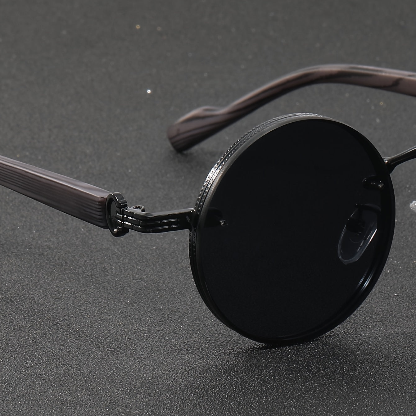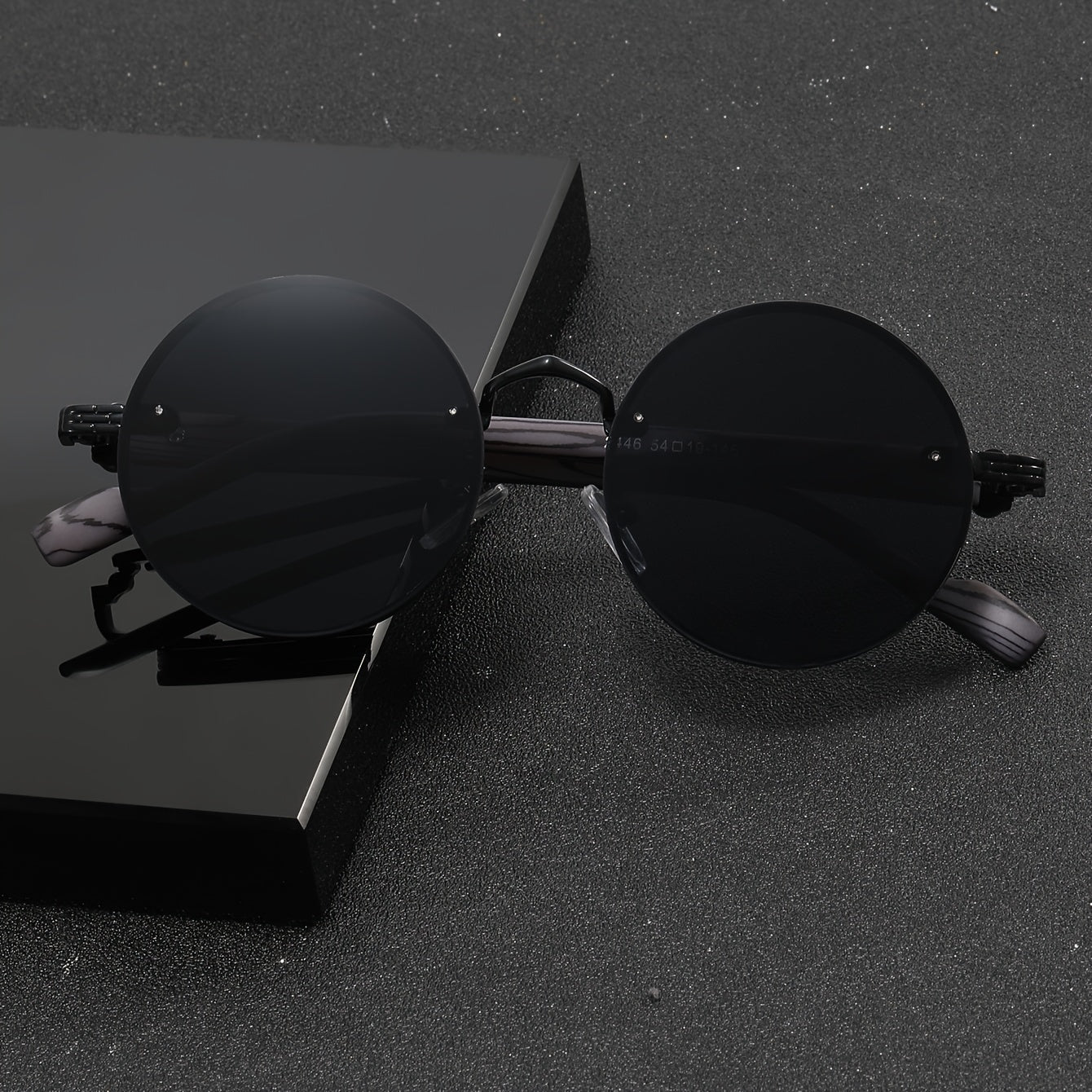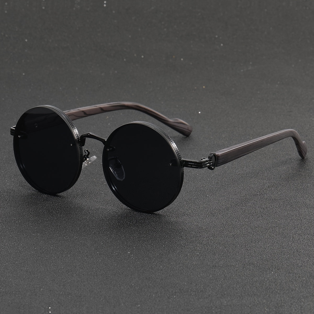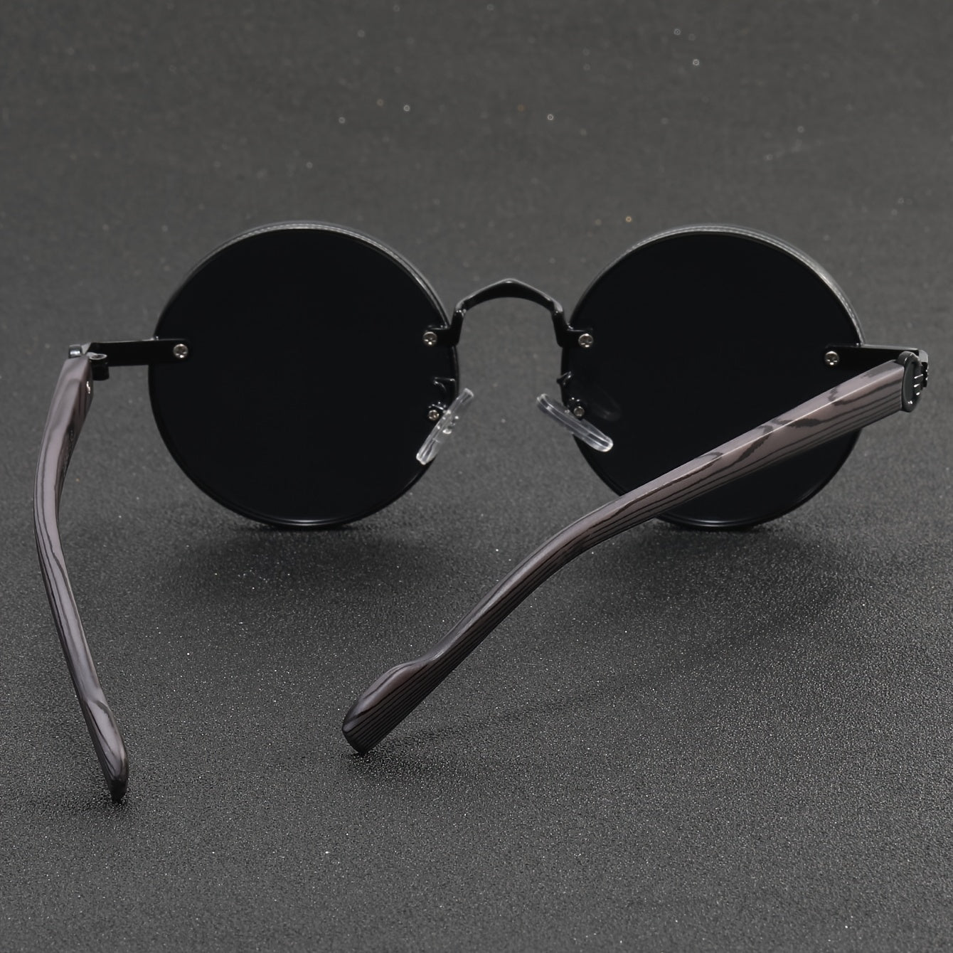 Маленькие круглые ретро очки с деревянными дужками, полностью черные - идеально подходят для путешествий.