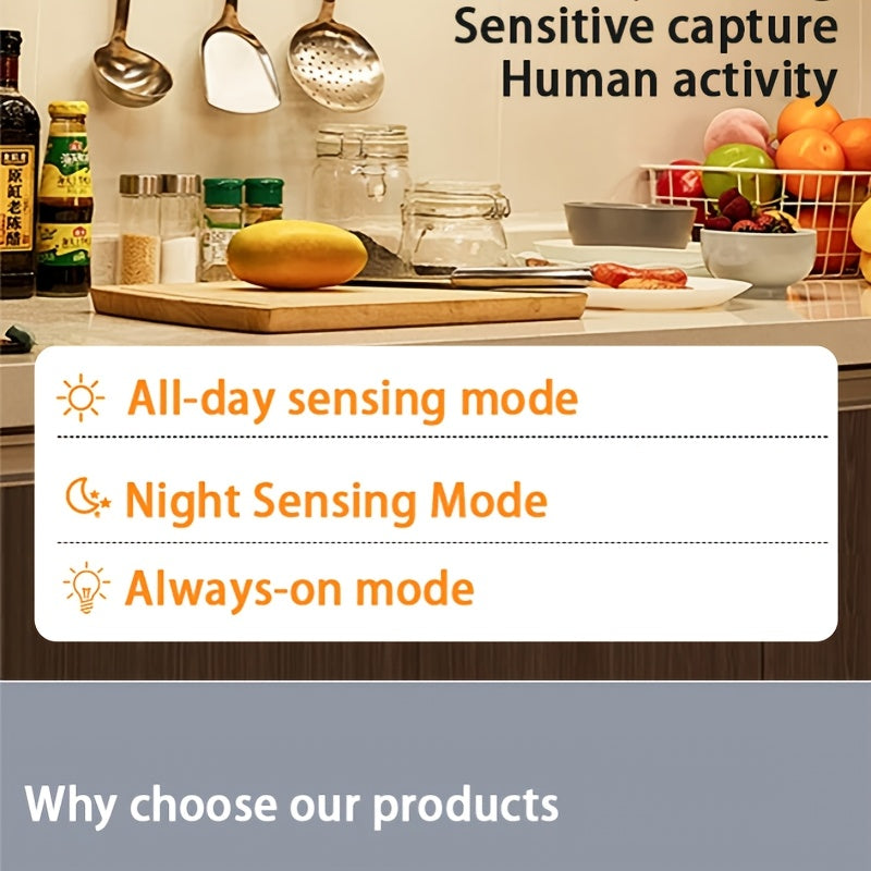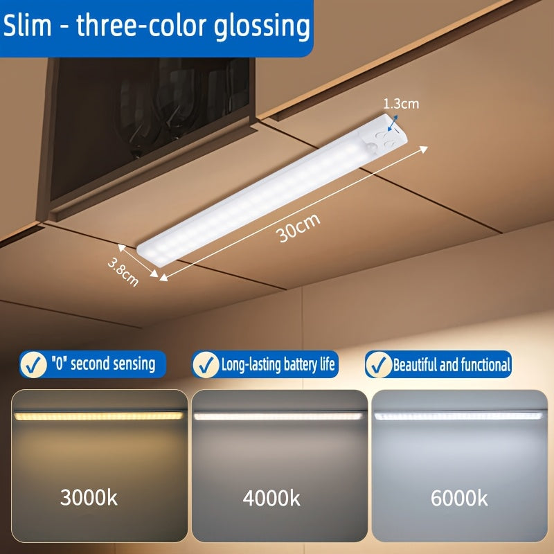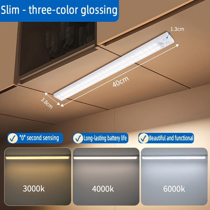 Умный светодиодный светильник с датчиком движения, USB-заряжаемый, 3 режима яркости, беспроводная установка, идеально подходит для шкафов, кладовок, спален, ванных комнат и лестниц.