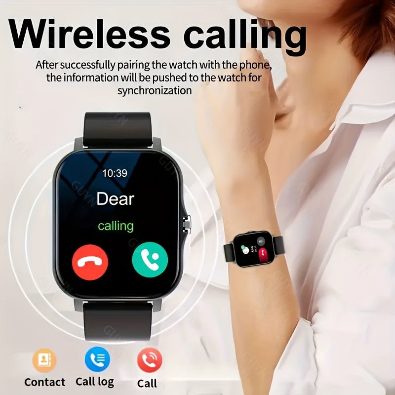 Умные часы с HD-дисплеем, спортивными режимами, уведомлениями, прогнозом погоды, безрамочным дизайном, беспроводными вызовами и зарядкой через USB. Идеальный подарок как для мужчин, так и для женщин, совместимы с Android.
