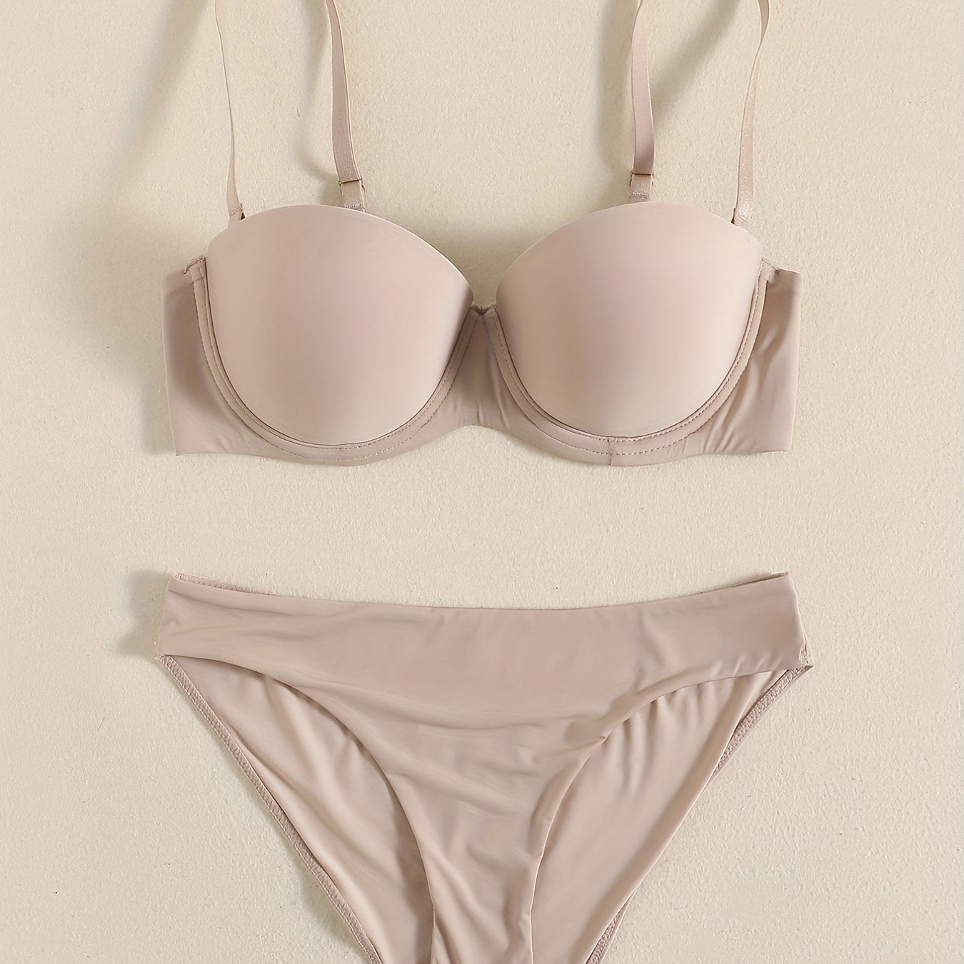 Гладкий комплект нижнего белья, включая бесшовный бюстгальтер, бюстгальтер-балконет и бикини для женщин.
