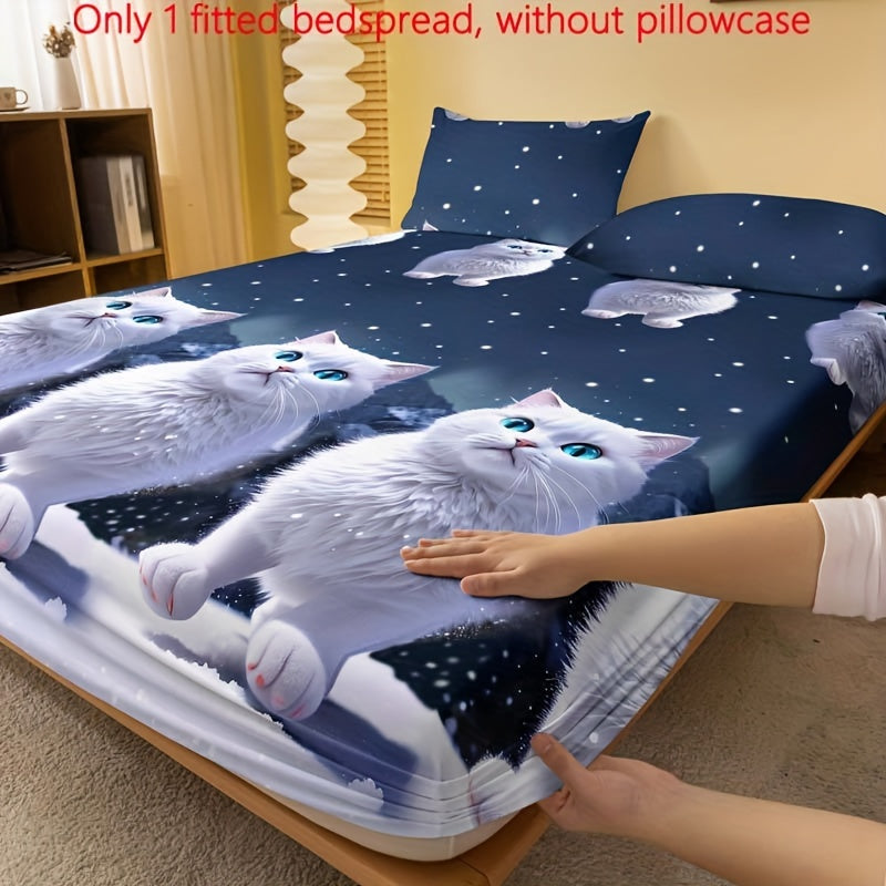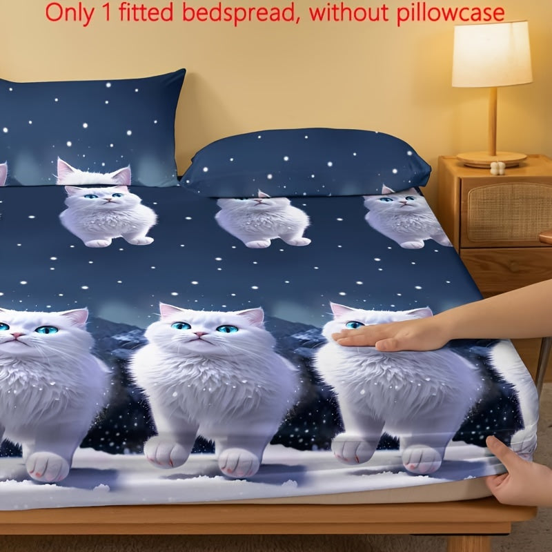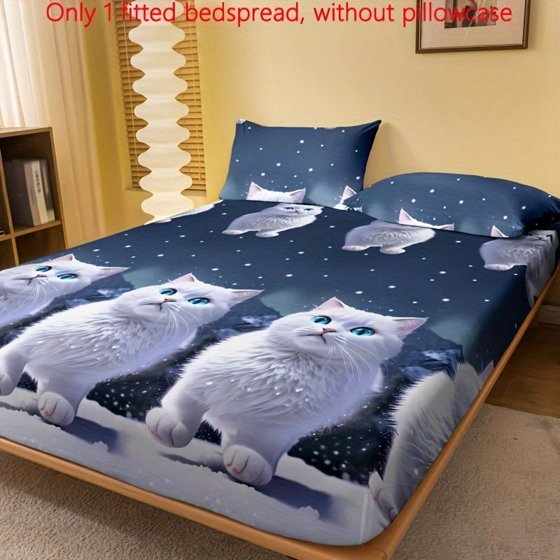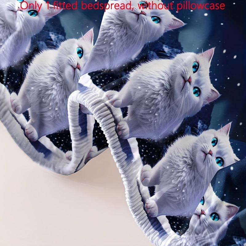 Простыня с принтом снежно-голубых глаз и белого кота, облегающая, с глубоким карманом, защитный чехол для матраса