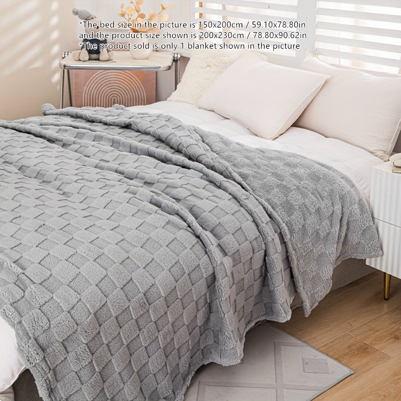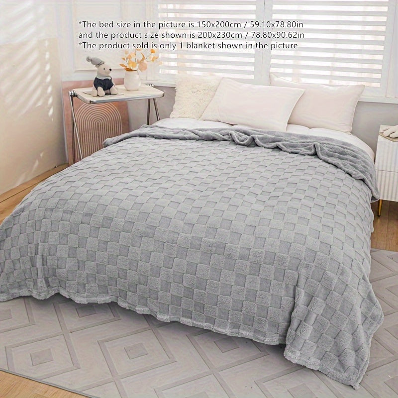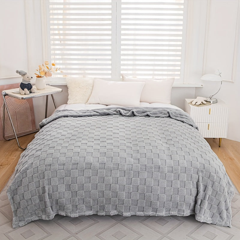 Светло-серое клетчатое теффатное пледовое одеяло из 100% полиэстера, уютный флис для дивана, кровати, путешествий