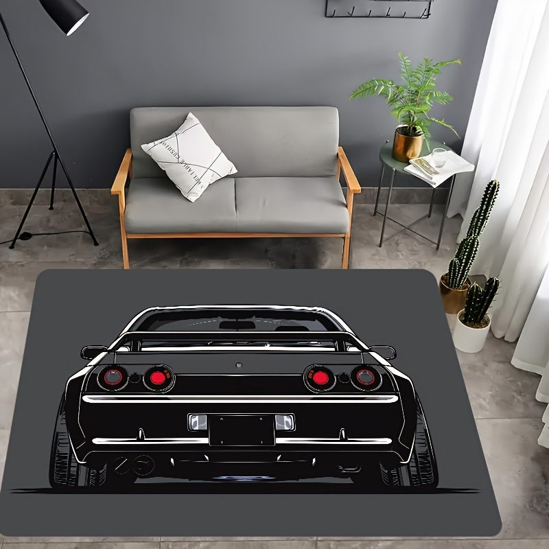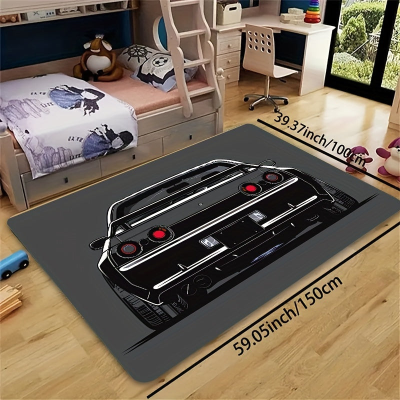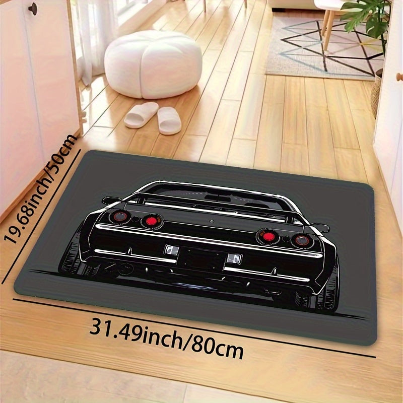 Мягкий коврик с креативным дизайном автомобиля - изготовлен из моющегося полиэстера, подходит для комнаты и спальни. Нескользящий и прочный для дома, кухни и прихожей. Украсьте ваше жилое пространство этим декоративным напольным ковриком.
