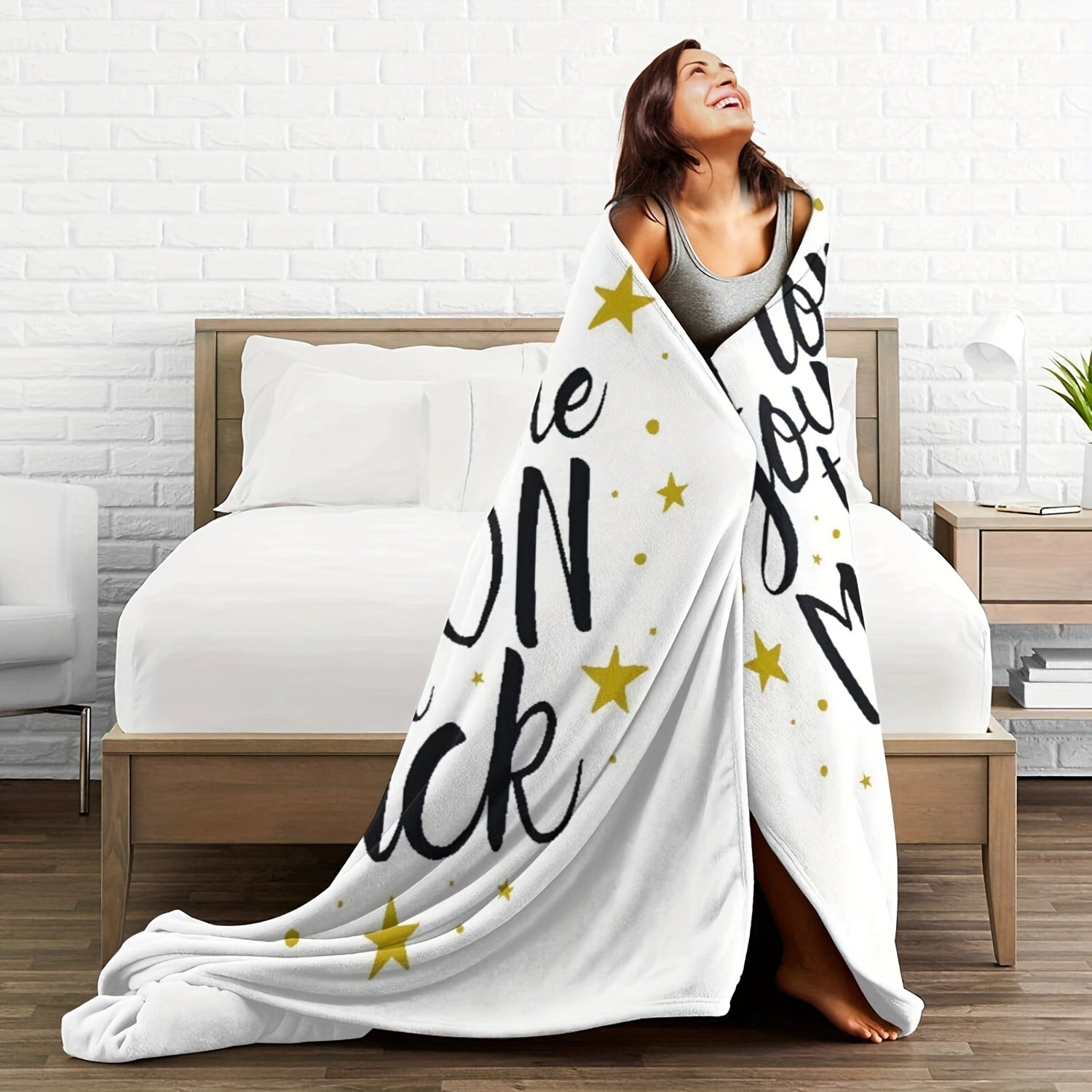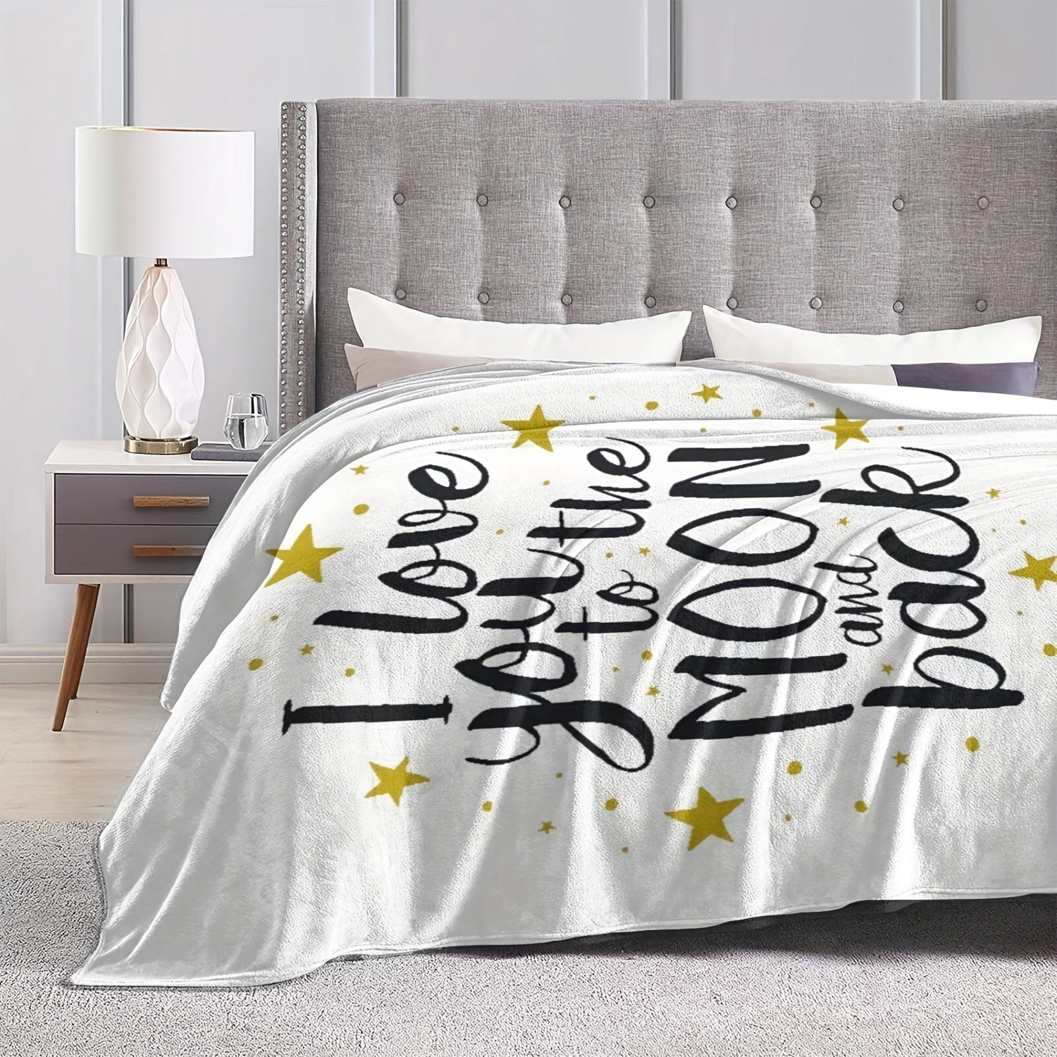 Мягкое фланелевое плед с надписью "Я люблю тебя до луны и обратно", идеально подходит для добавления тепла и стиля в ваш домашний декор. Подходит для диванов, кроватей, соф и гостиных.