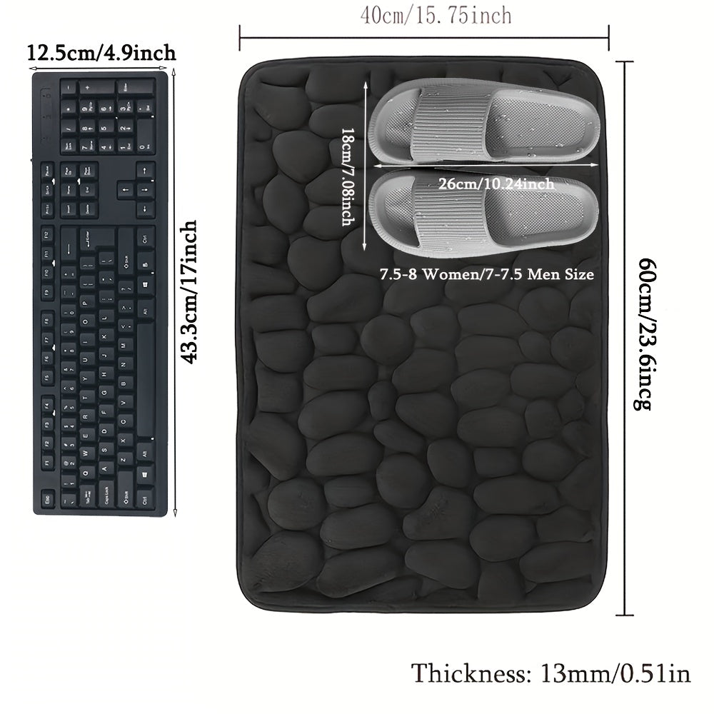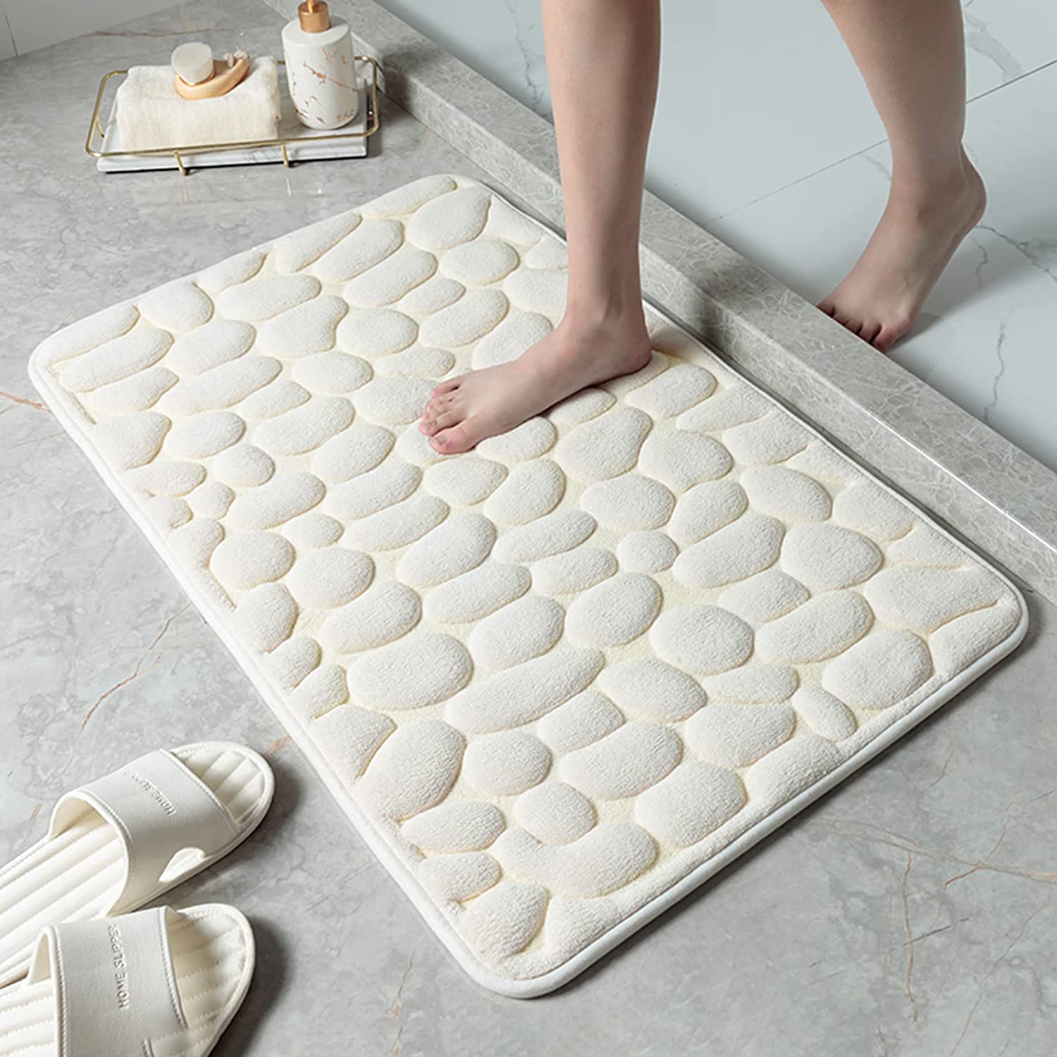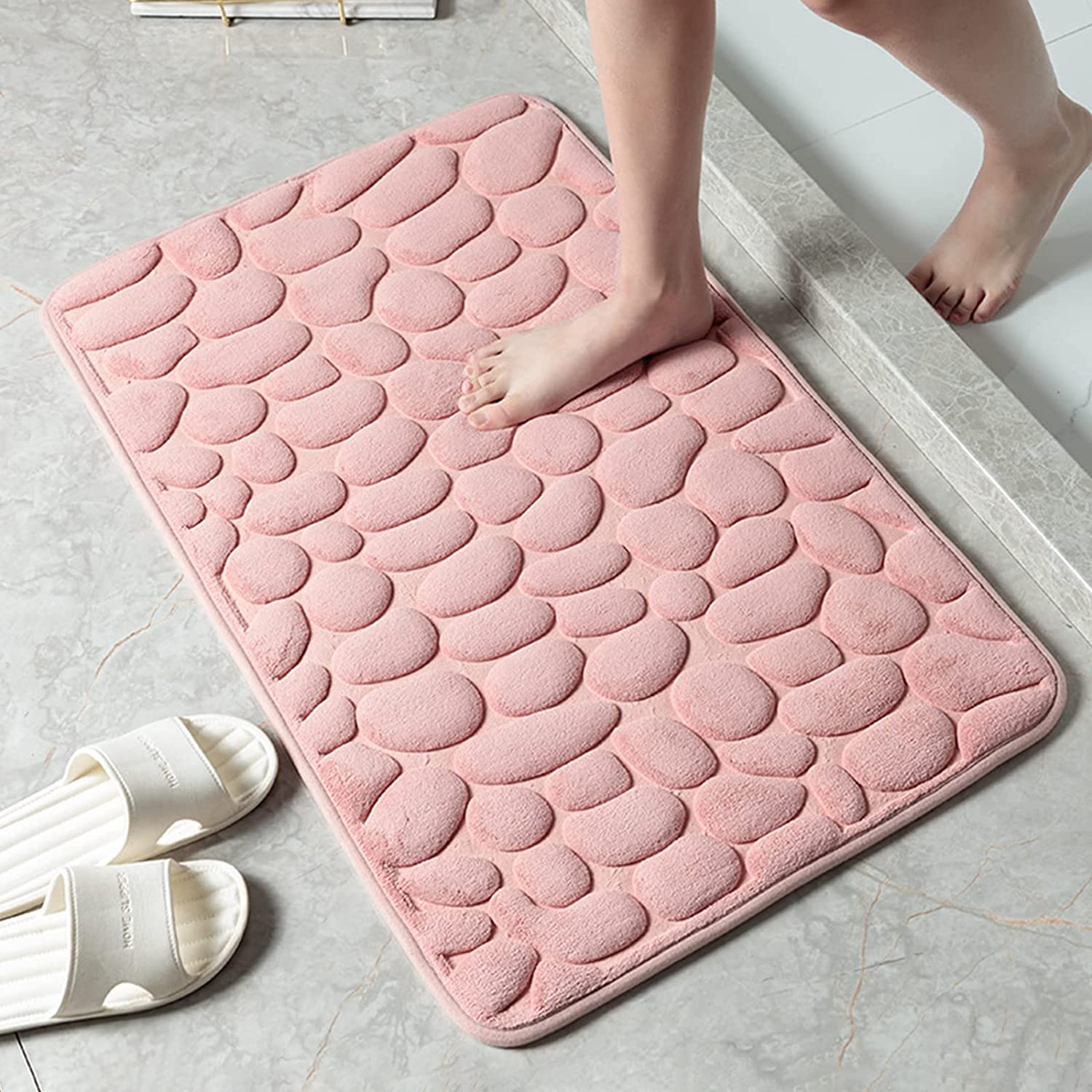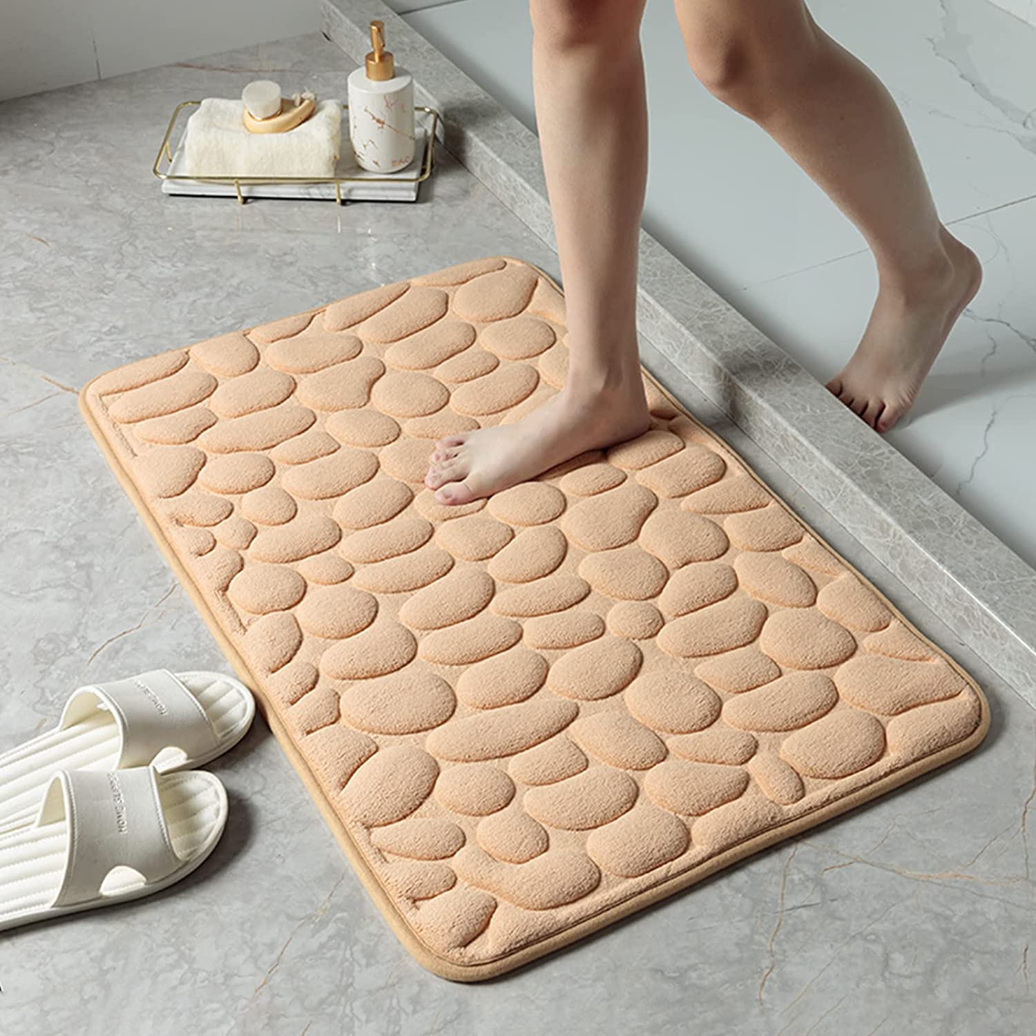 Мягкий коврик для ванной из мемори-фоама с рельефным дизайном в виде булыжников из кораллового флиса, идеален для декора ванной и релаксации, а также для использования в других зонах, таких как кухня, спальня и душ.