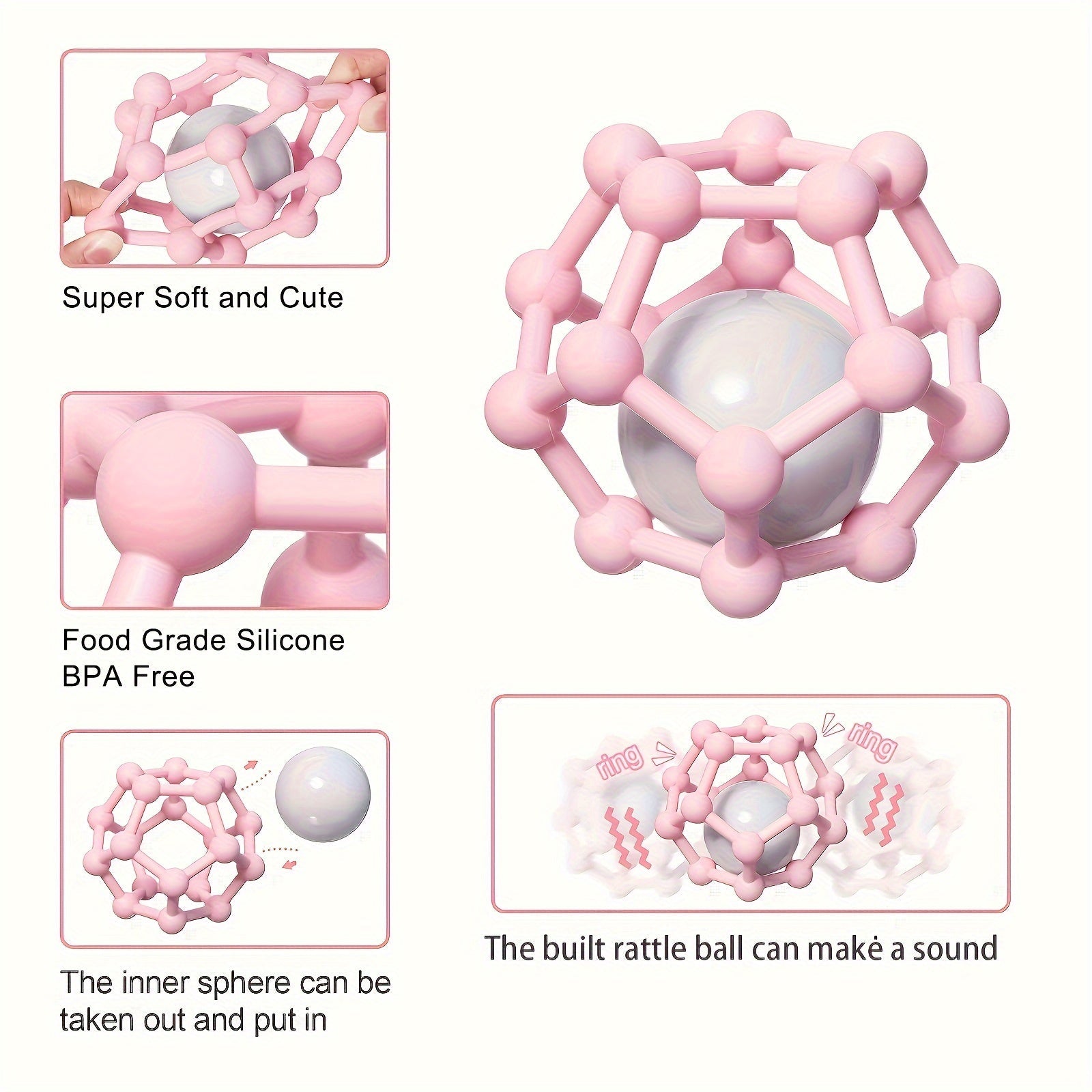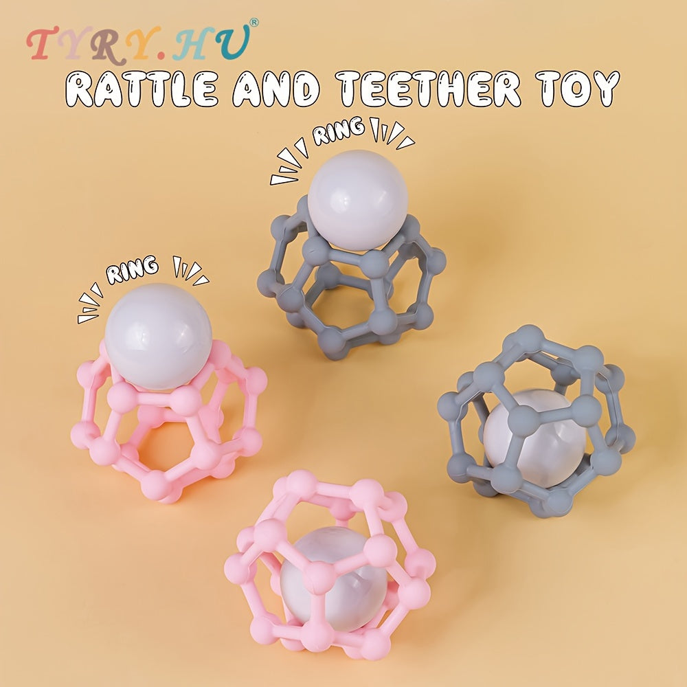 Мягкий силиконовый погремушка-грелка в форме шара от TYRY.HU - идеальная игрушка для маленьких, которую легко держать. Отличный подарок на Рождество и День благодарения в стильных сером и розовом цветах.