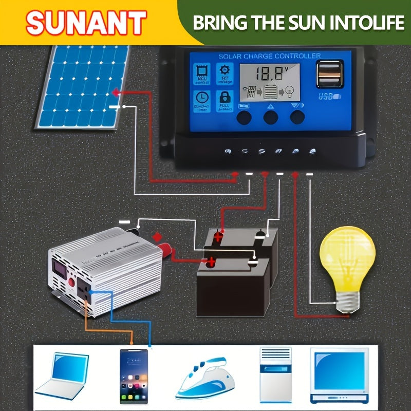 Контроллер заряда солнечной энергии 10A-100A MPPT ЖК-дисплей USB Защита от перенапряжения