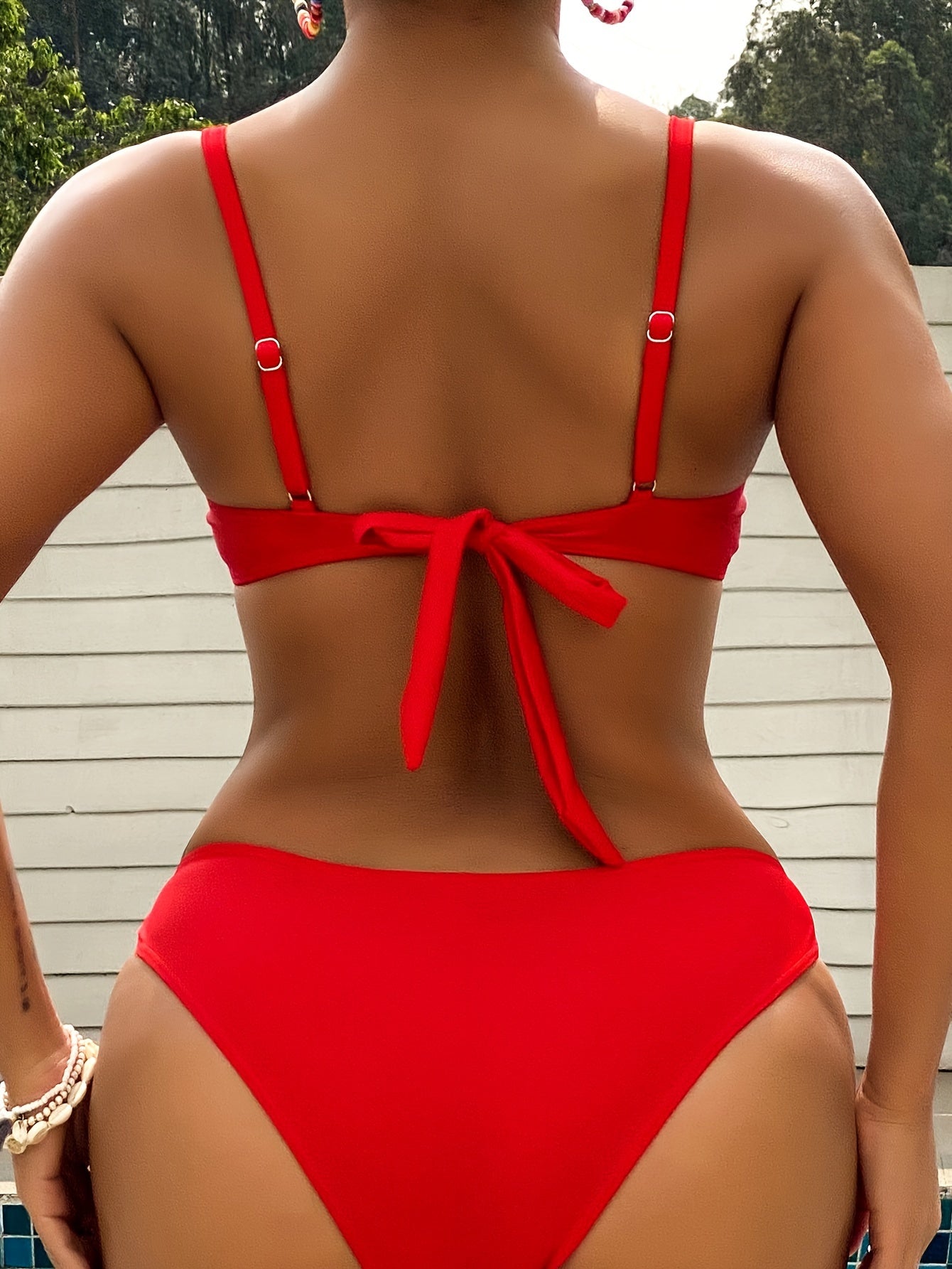 Комплект купальника из 2-х предметов однотонного цвета с завязками спереди и высокими вырезами для женщин