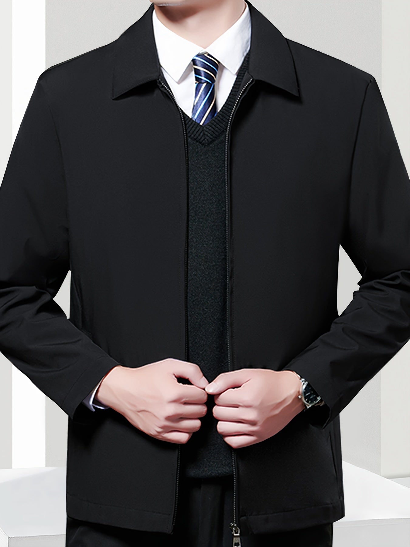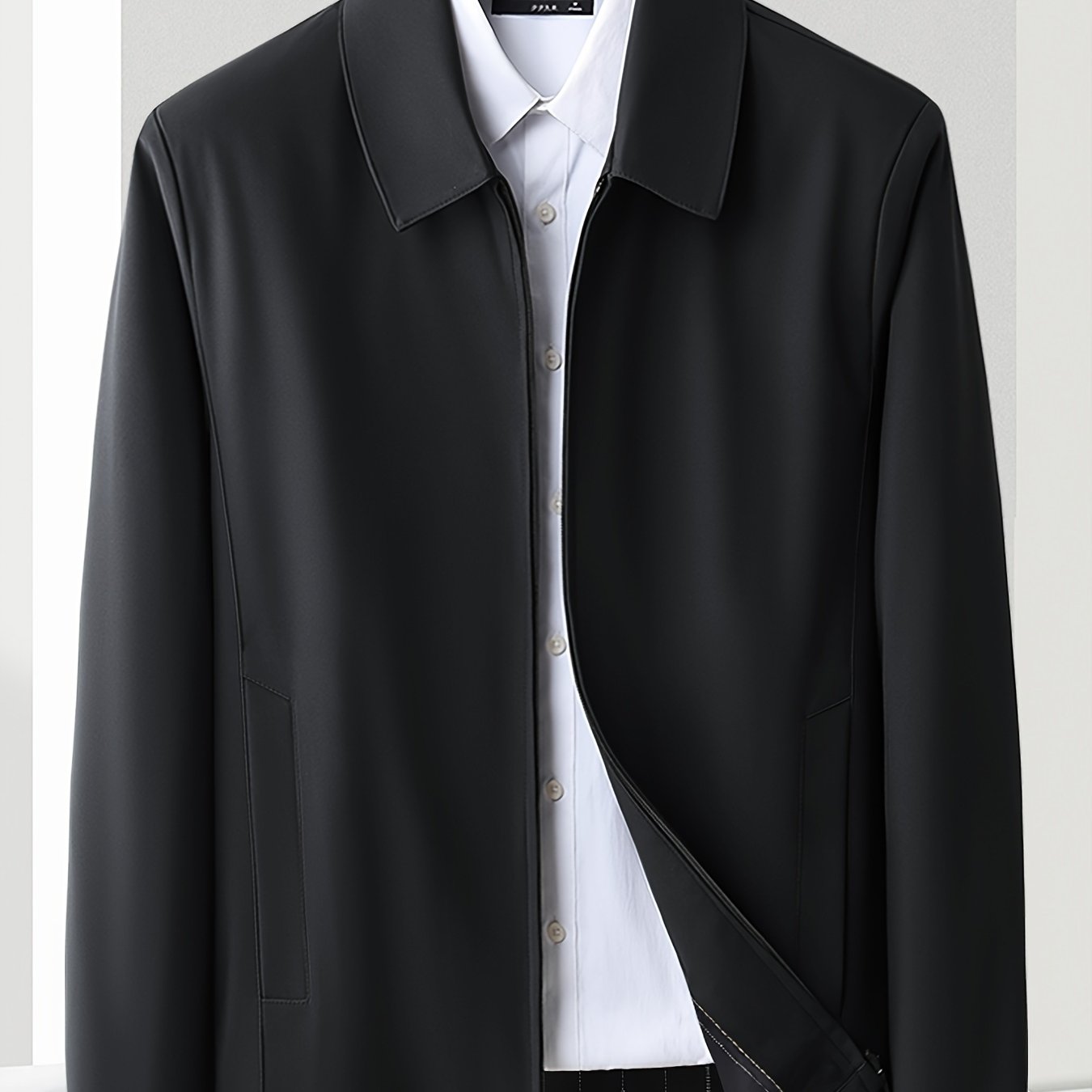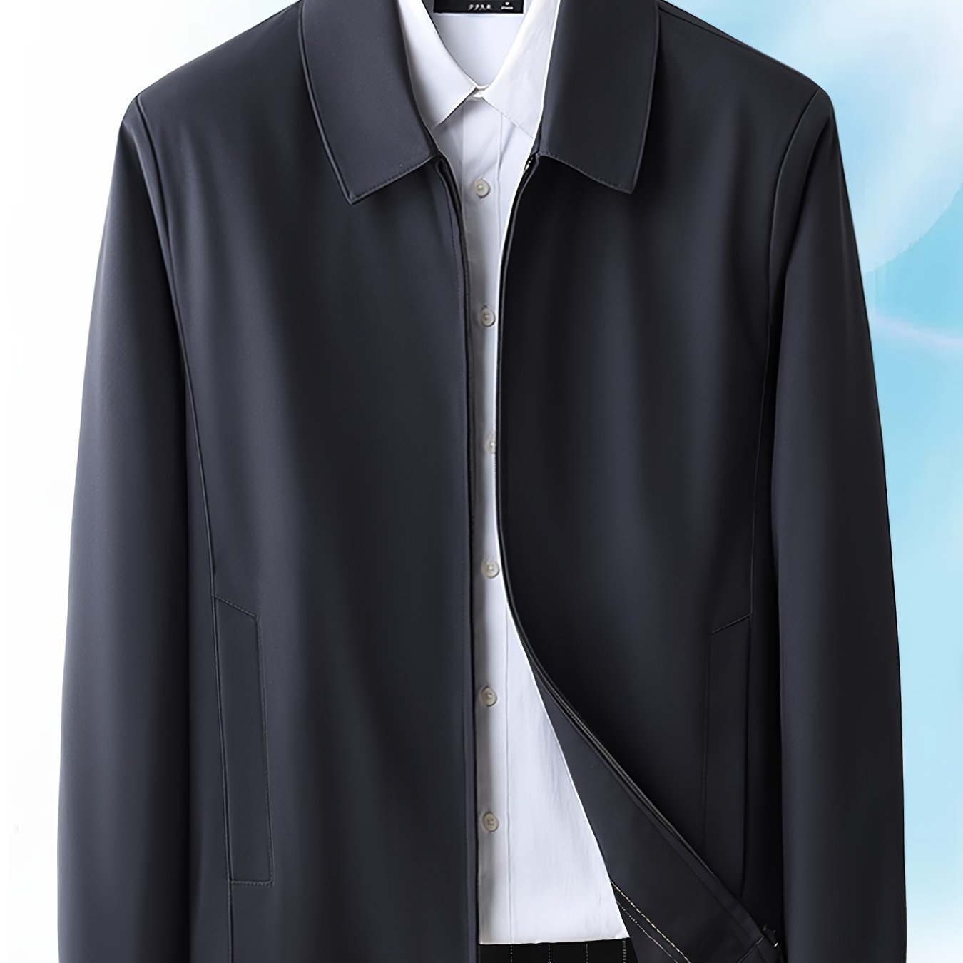 Мужская однотонная полиэстеровая куртка классического кроя с длинными рукавами, лацканами, молнией, повседневная, для всех сезонов
