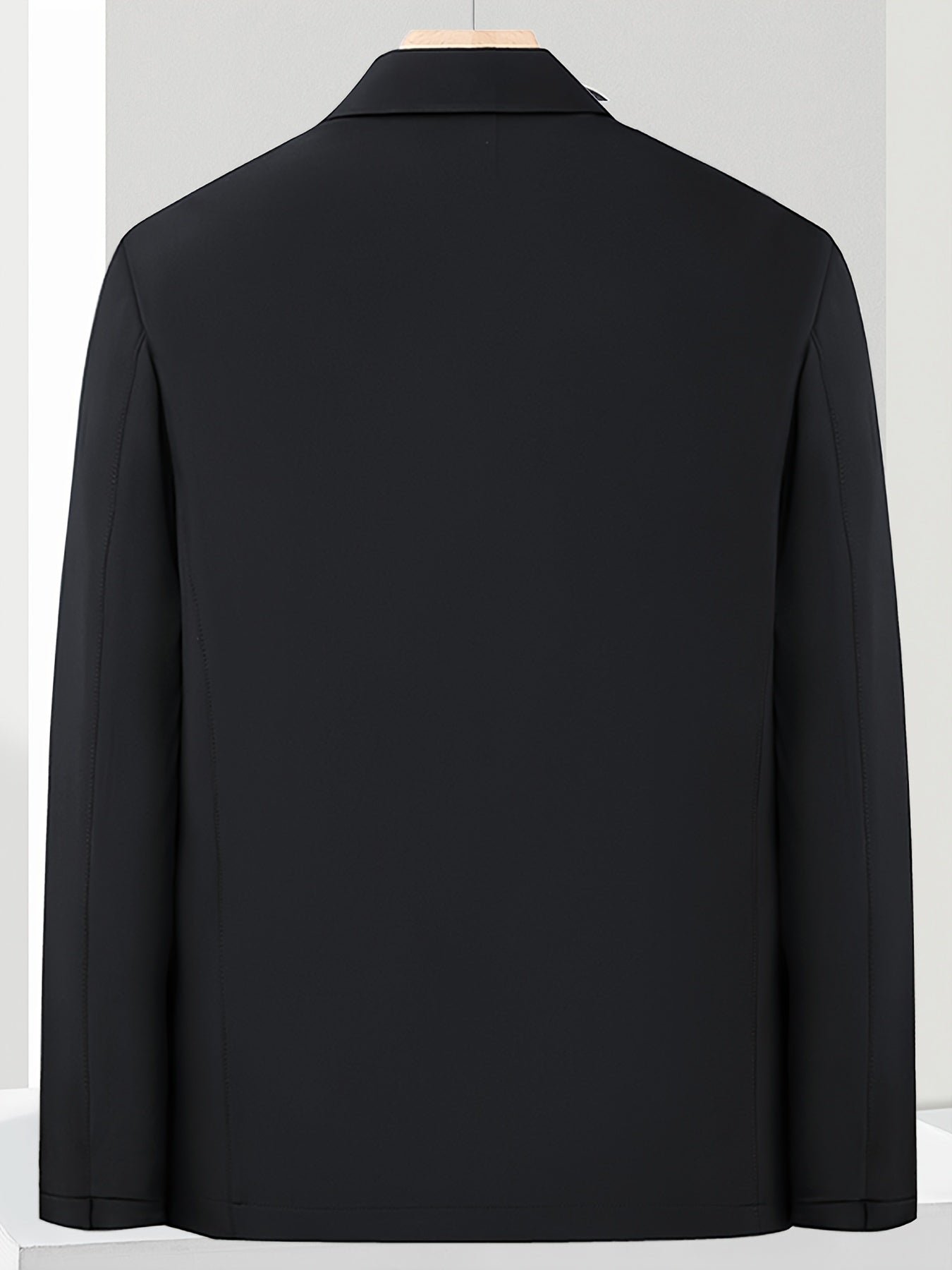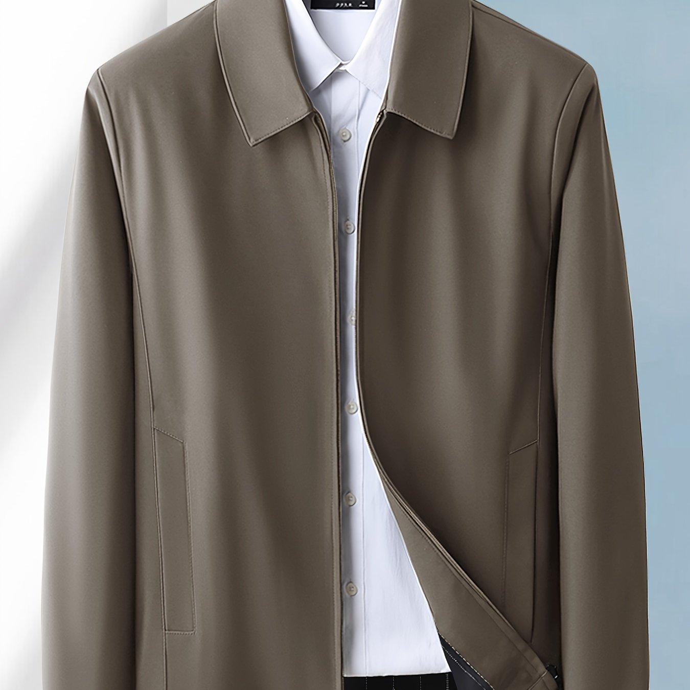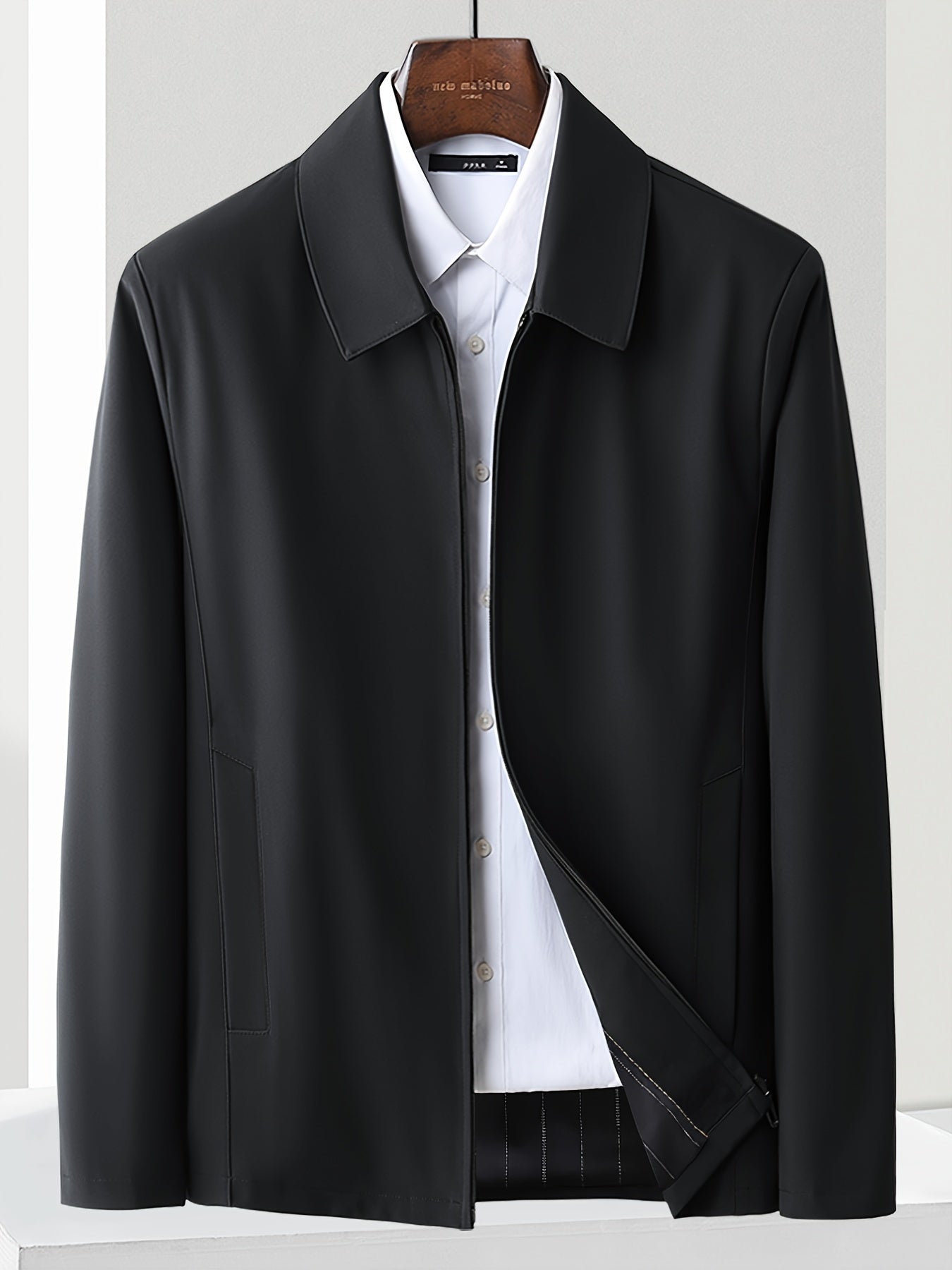 Мужская однотонная полиэстеровая куртка классического кроя с длинными рукавами, лацканами, молнией, повседневная, для всех сезонов
