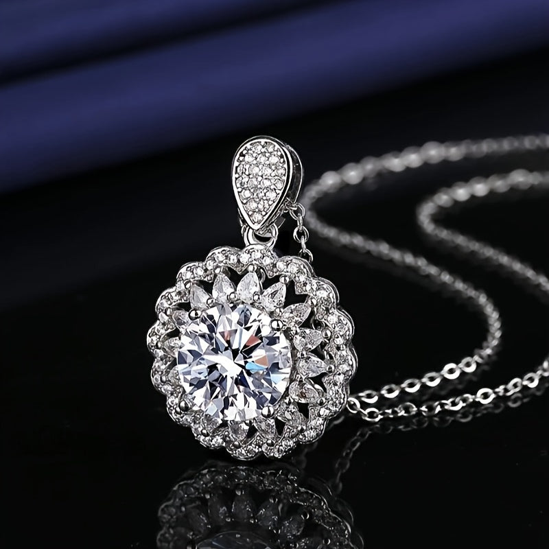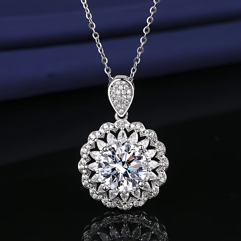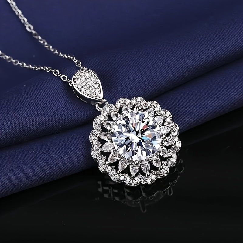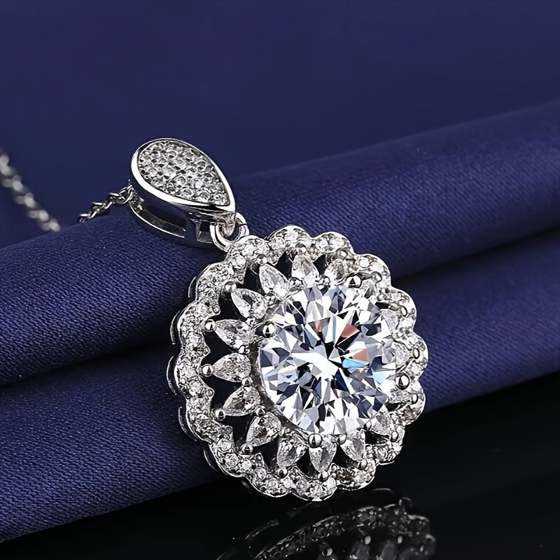 Сложное ожерелье с подвеской в виде подсолнуха из моиссанита весом 5 карат - стильный и минималистичный дизайн, идеальный для повседневной носки или в качестве подарка