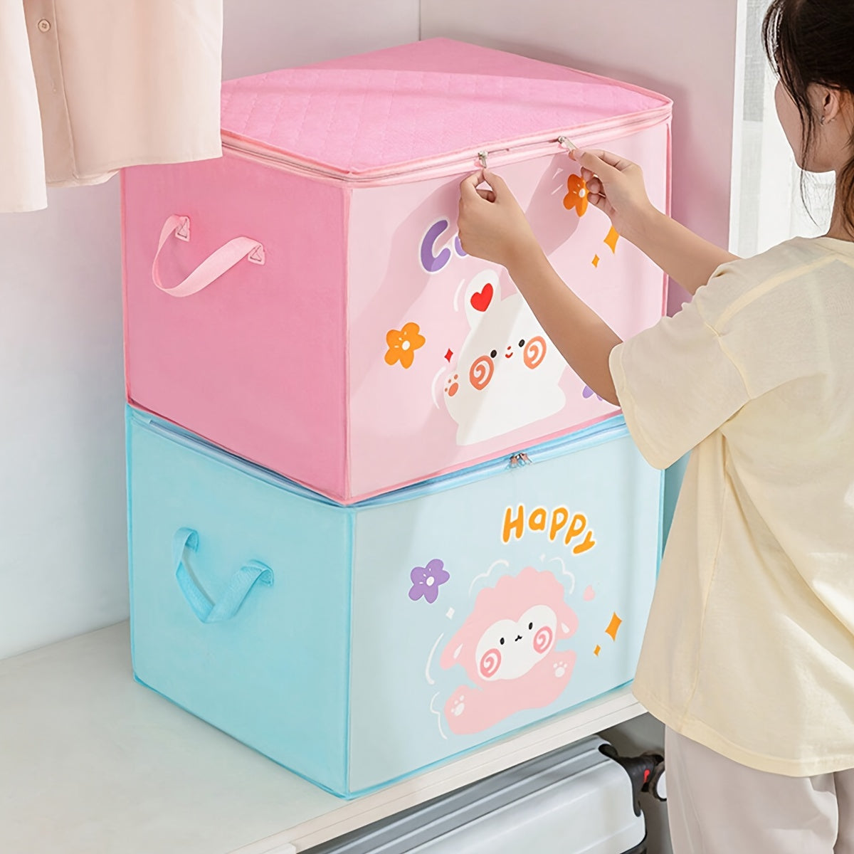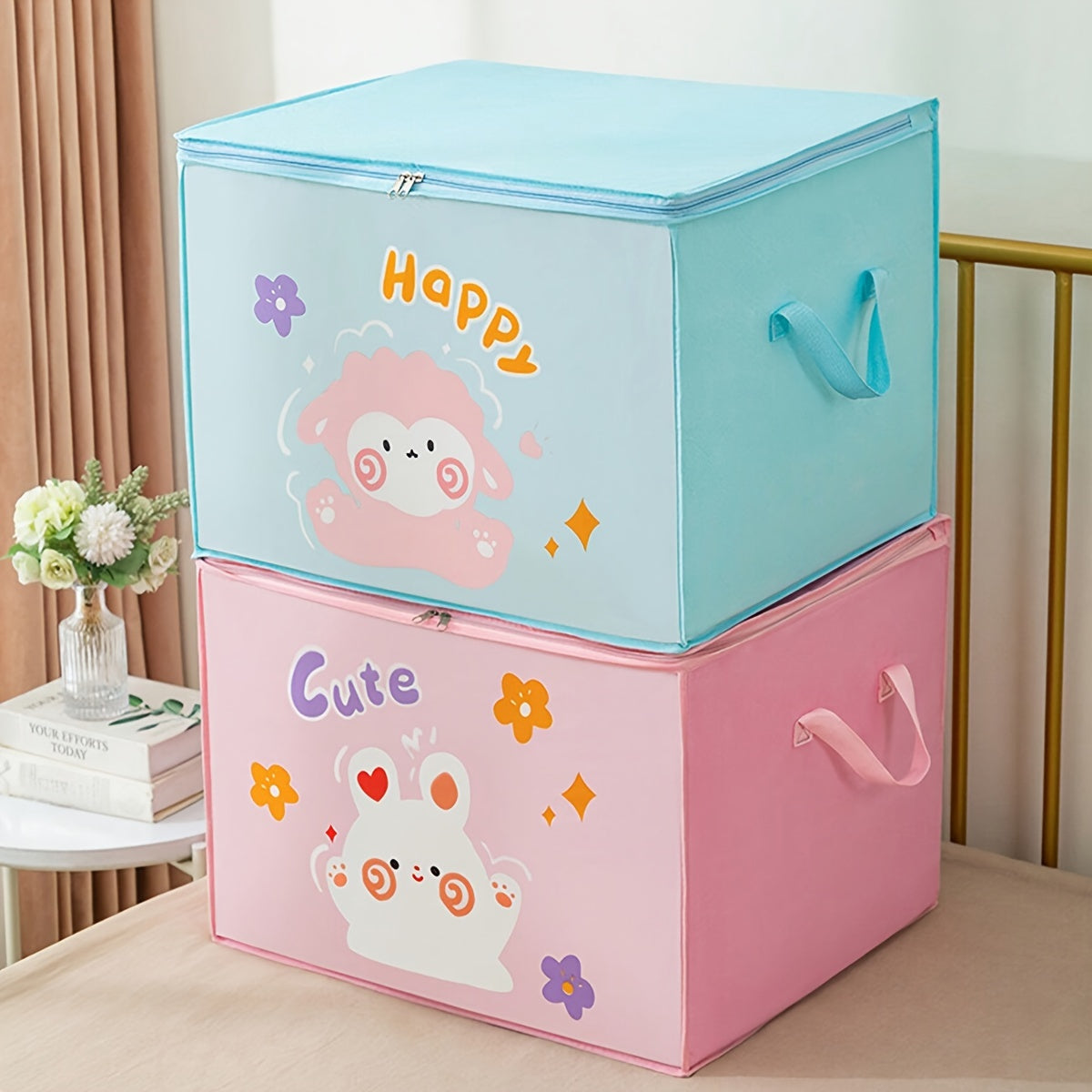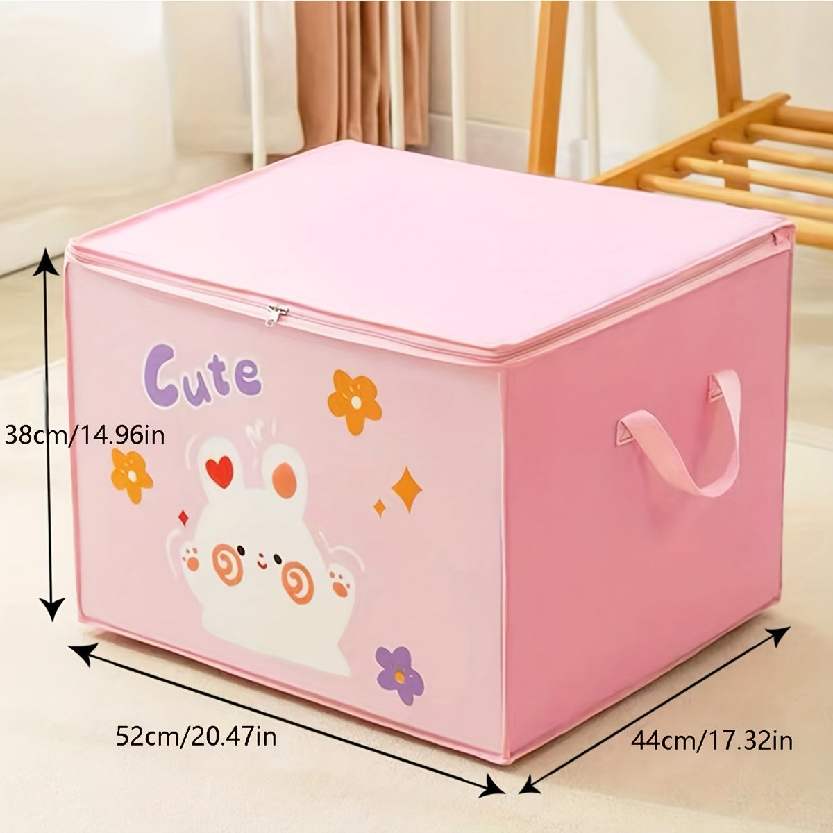 Просторная картонная коробка для хранения с молнией - изготовлена из нетканого материала, включает прозрачное окно для организации одежды и подушек