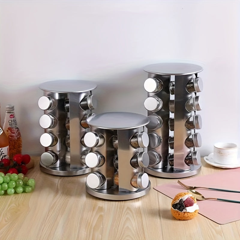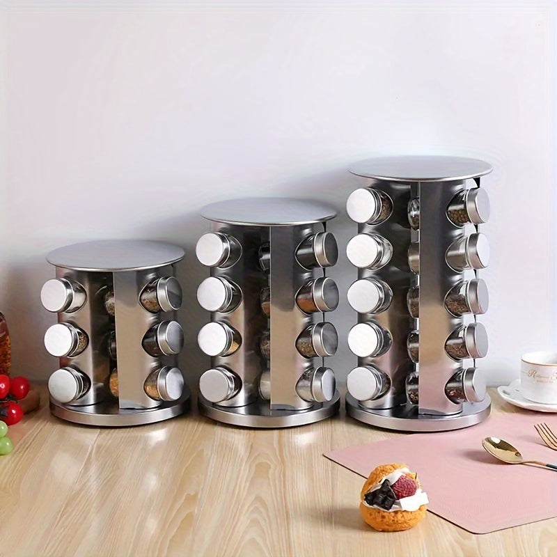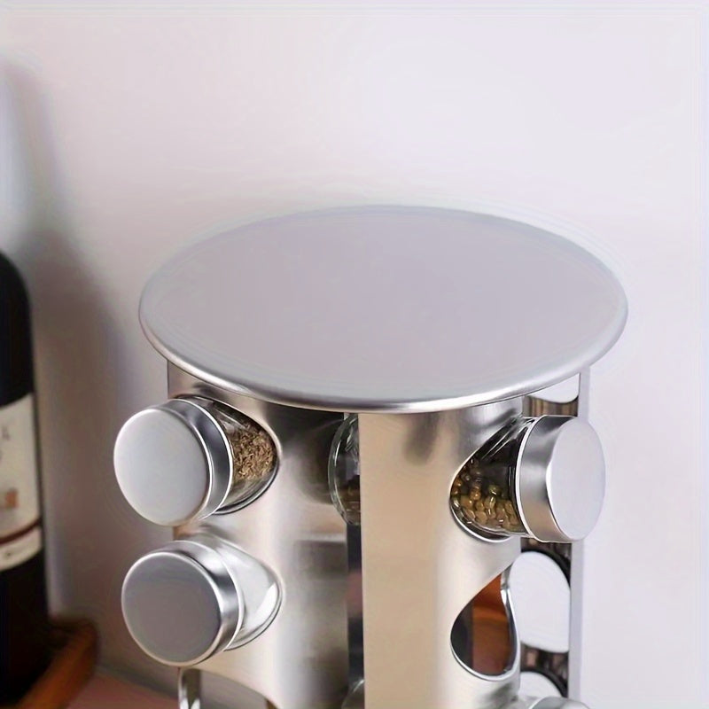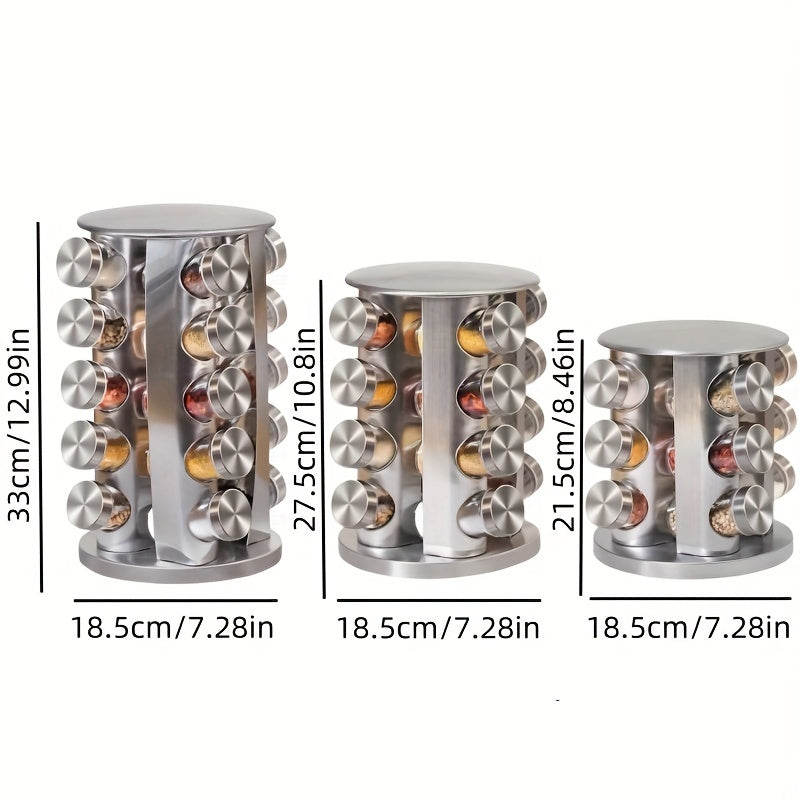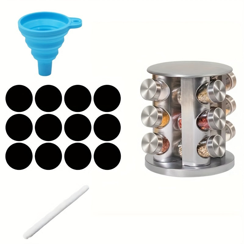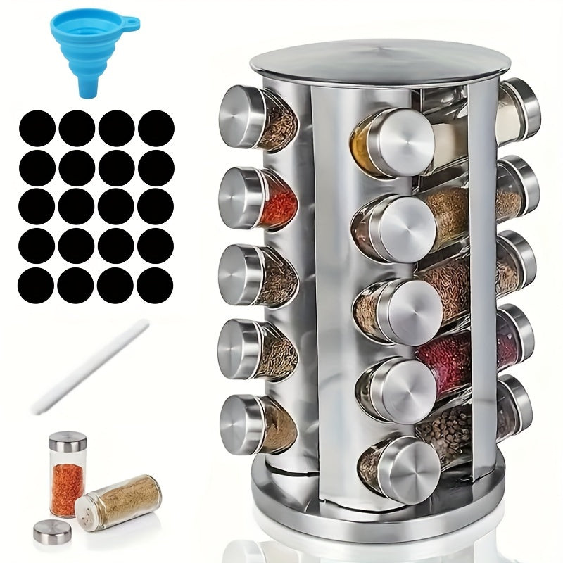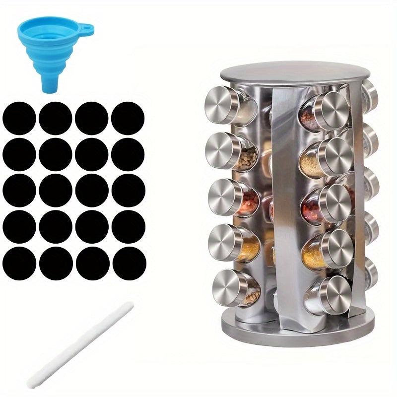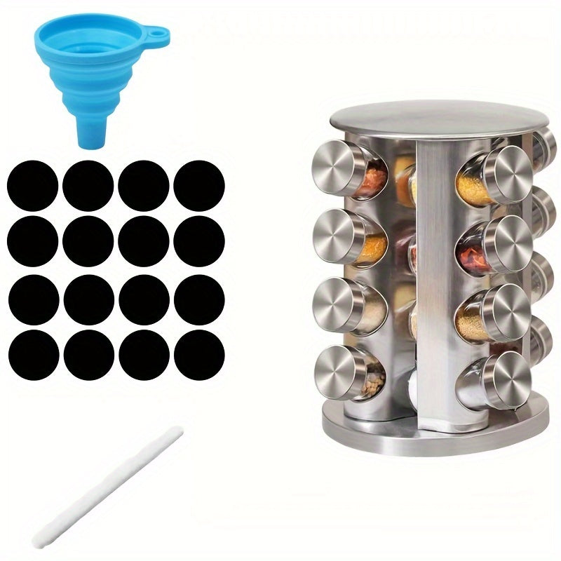 Круглосуточная вращающаяся стойка для специй из нержавеющей стали, вмещает 12-20 банок с этикетками и воронкой