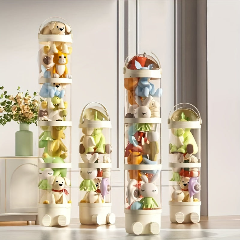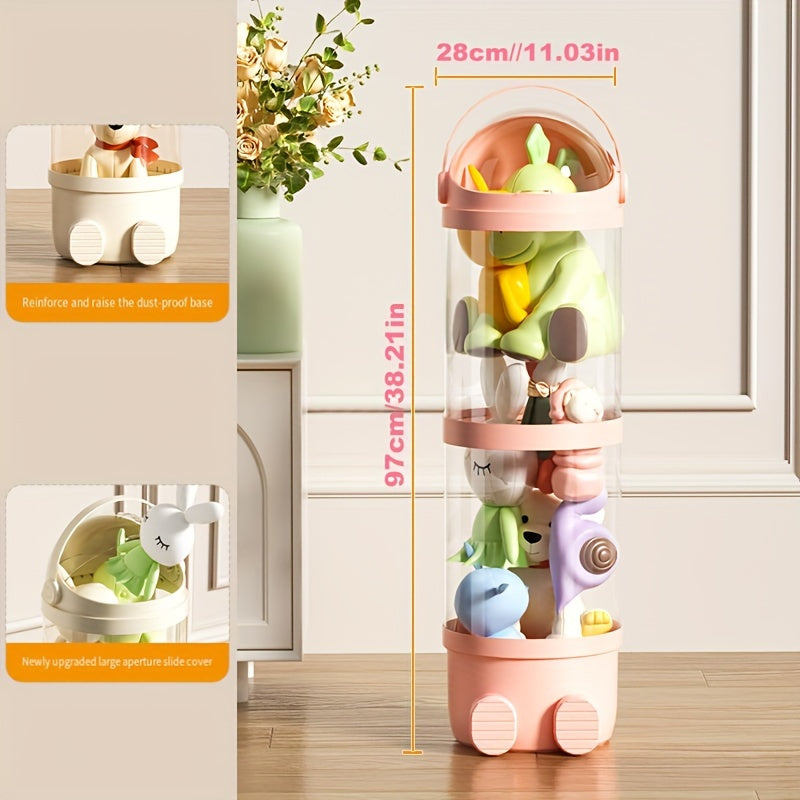 Складная коробка для хранения мягких игрушек, прозрачная с водонепроницаемой розовой, белой или зеленой крышкой для домашнего декора.