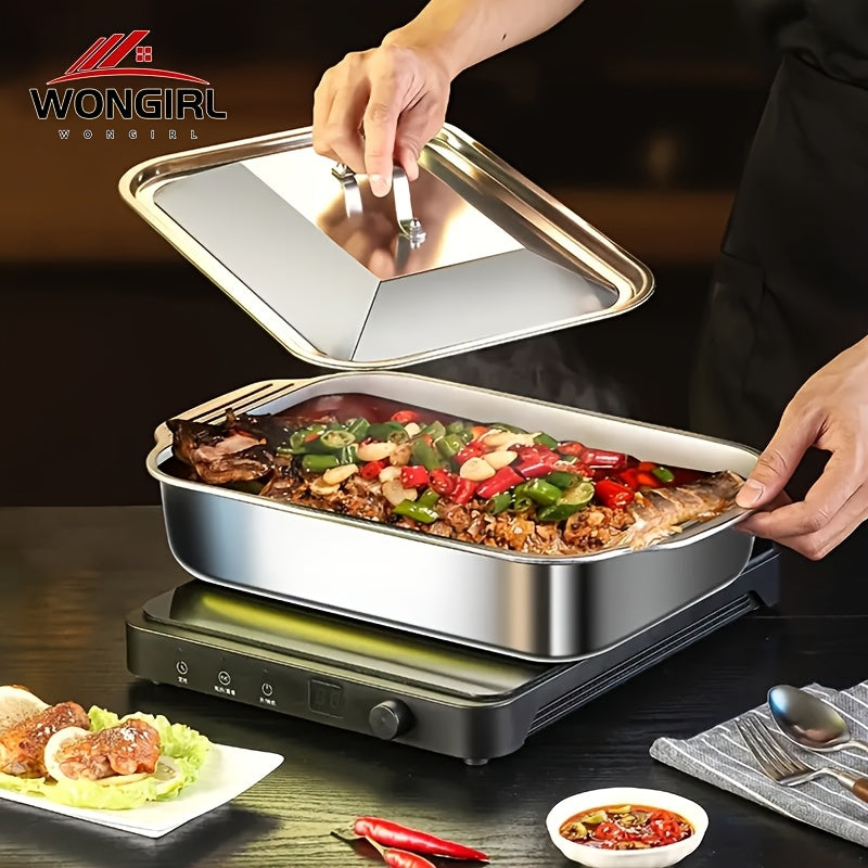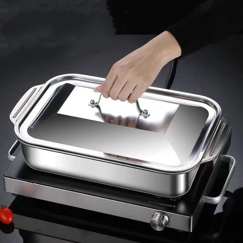 Набор противней из нержавеющей стали с крышкой, антипригарный, универсальный для десертов, хлеба, барбекю и многого другого. Устойчив к высоким температурам, легко чистится, включает прямоугольные противни, подносы для морепродуктов, ужин.