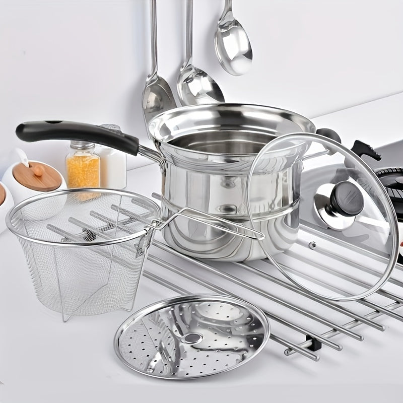 Набор посуды из нержавеющей стали с корзиной для жарки, паровой корзиной и крышкой