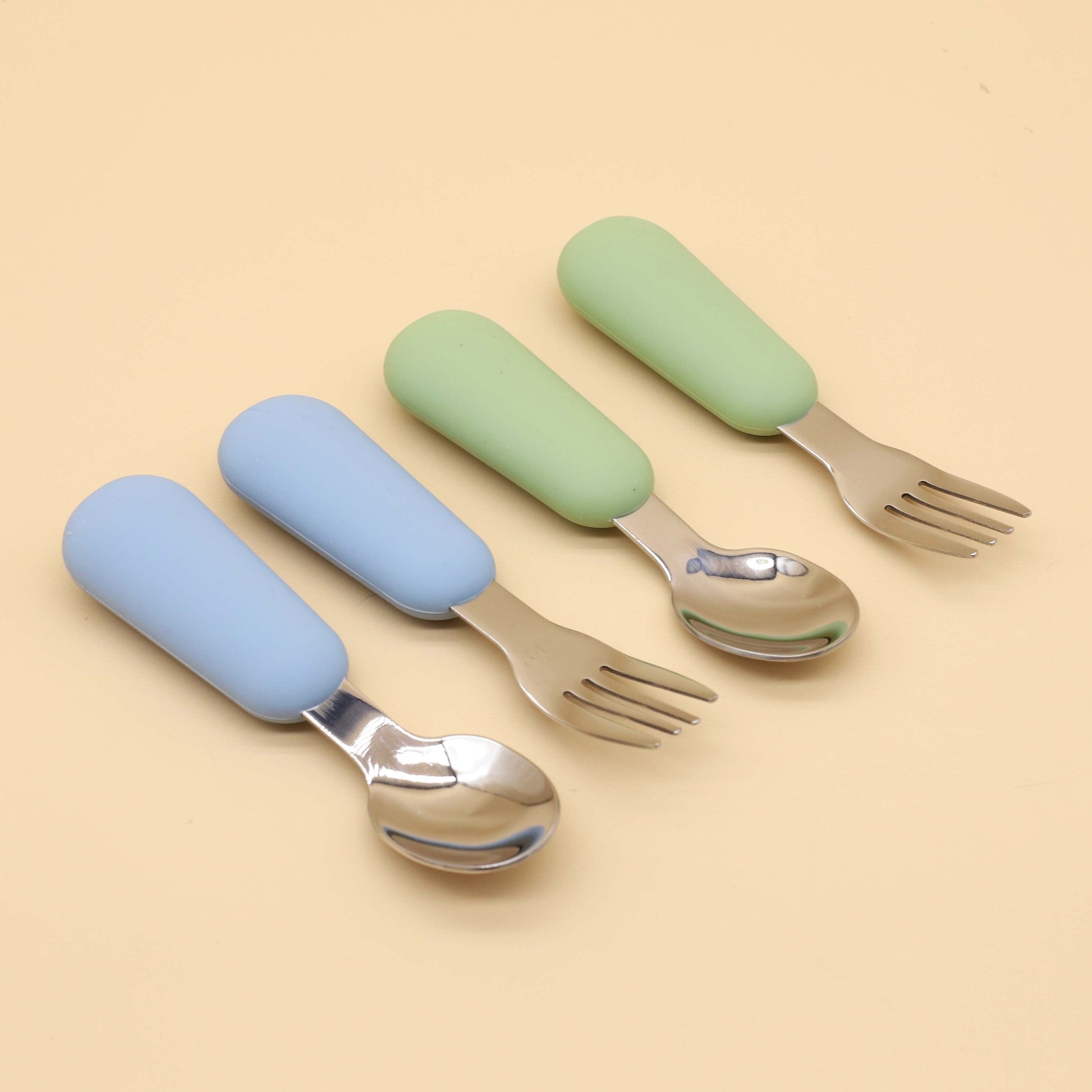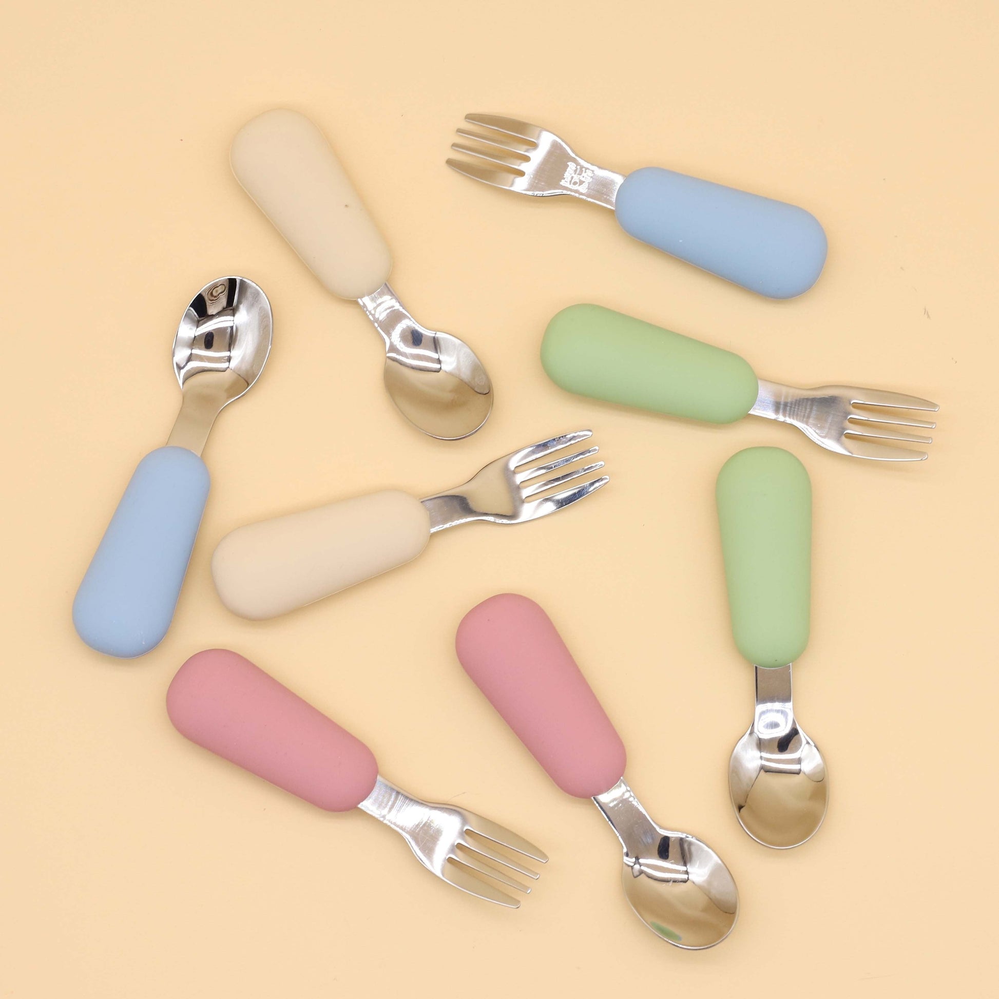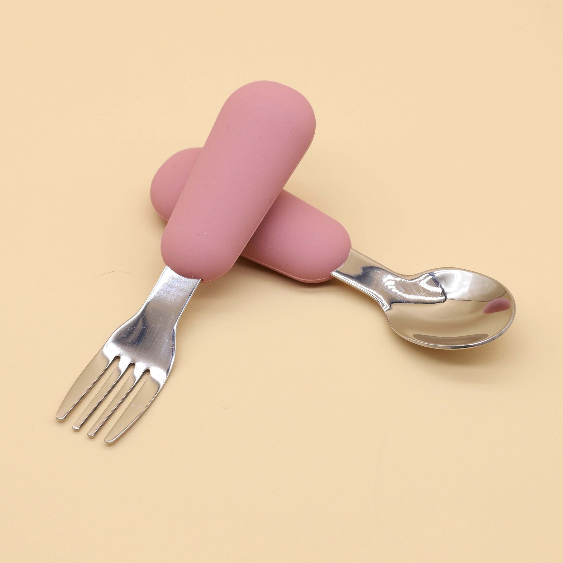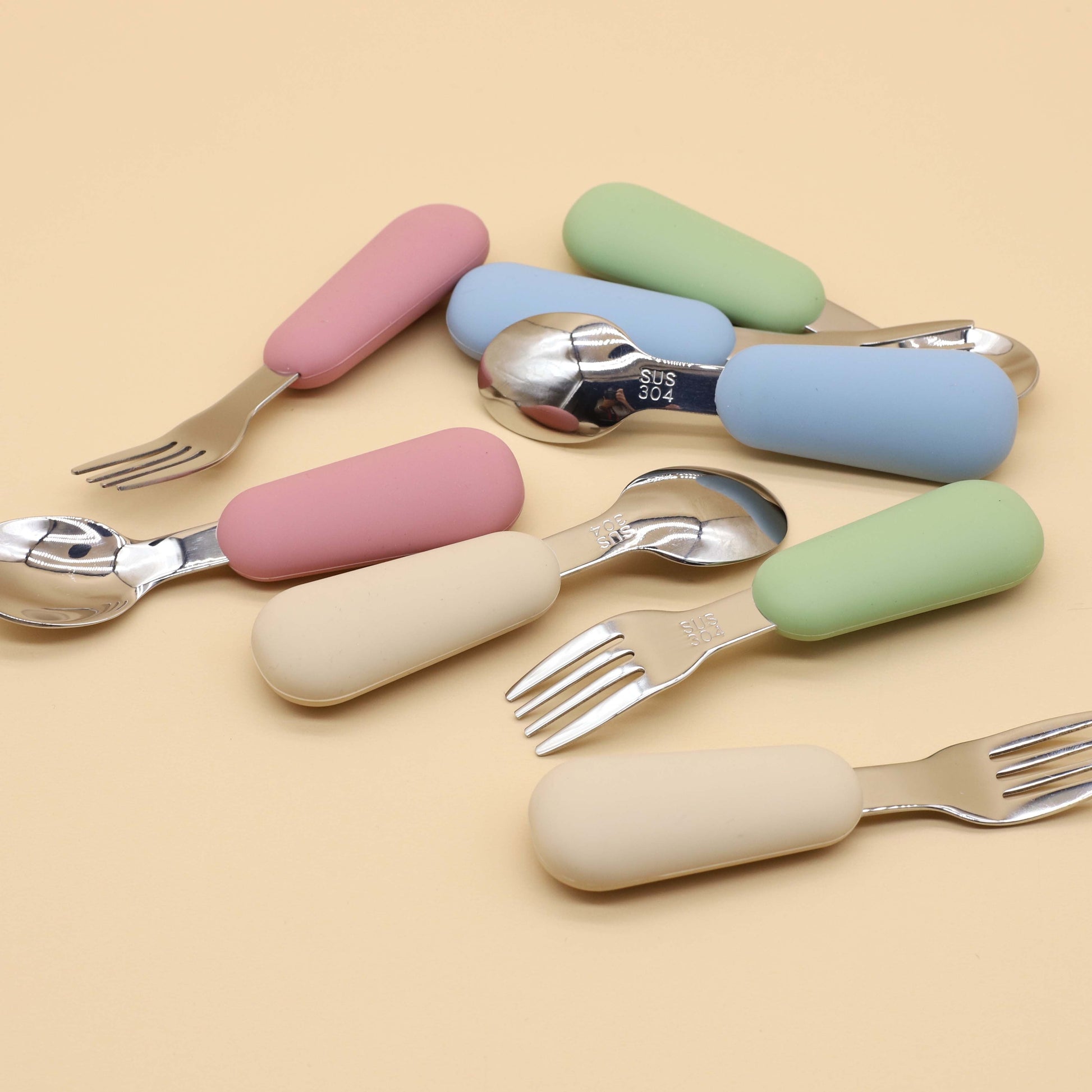 Набор ложки и вилки из нержавеющей стали с красными силиконовыми ручками - Идеально для