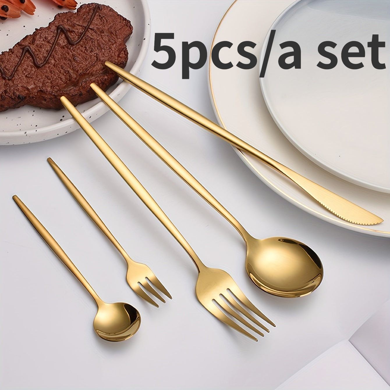 Набор столовых приборов из нержавеющей стали с золотым покрытием и элегантным современным дизайном для дома, кухни, ресторана и свадебного использования.