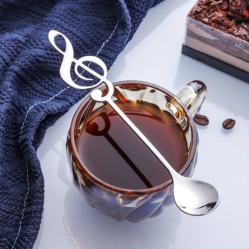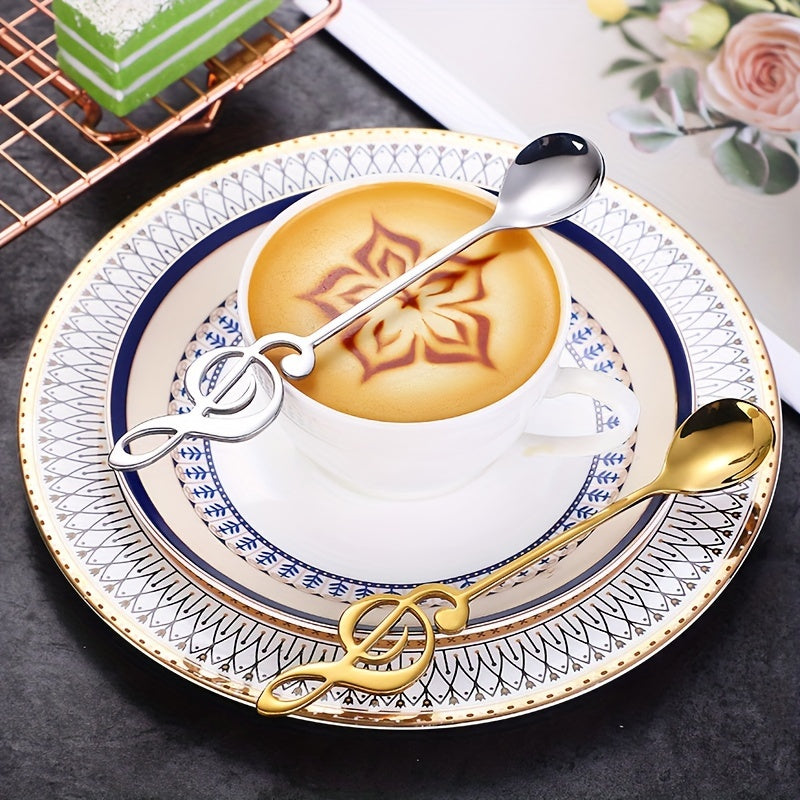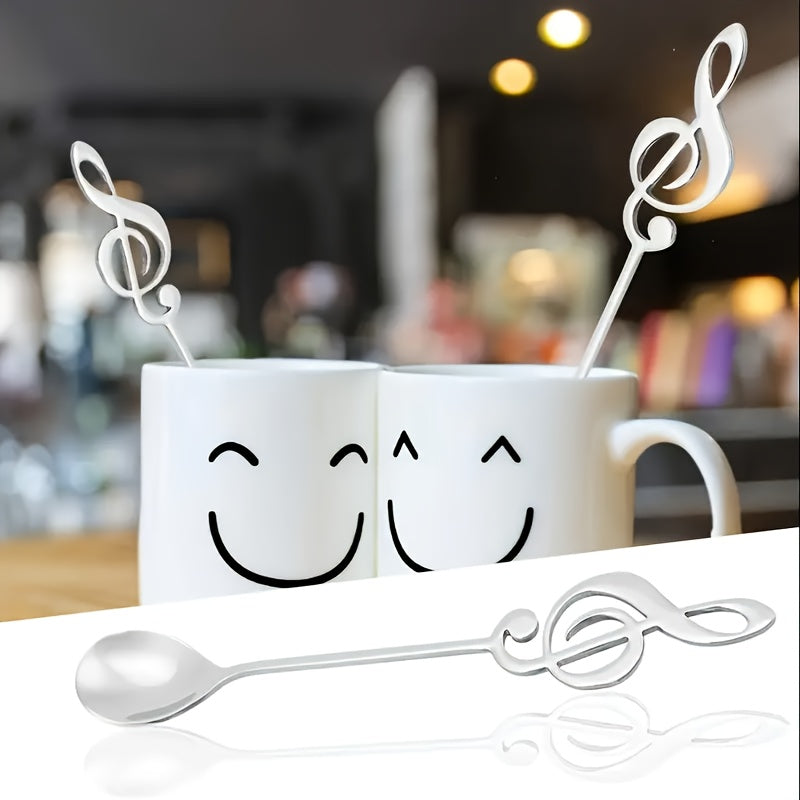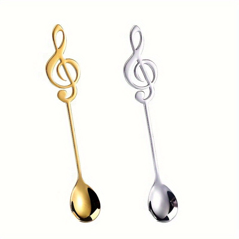 Десертная ложка из нержавеющей стали в форме нот, созданная для удобства - прочная, безопасная и простая в мытье, идеально подходит для размешивания кофе и многого другого - отлично подходит для использования дома, на работе, в кафе и ресторанах