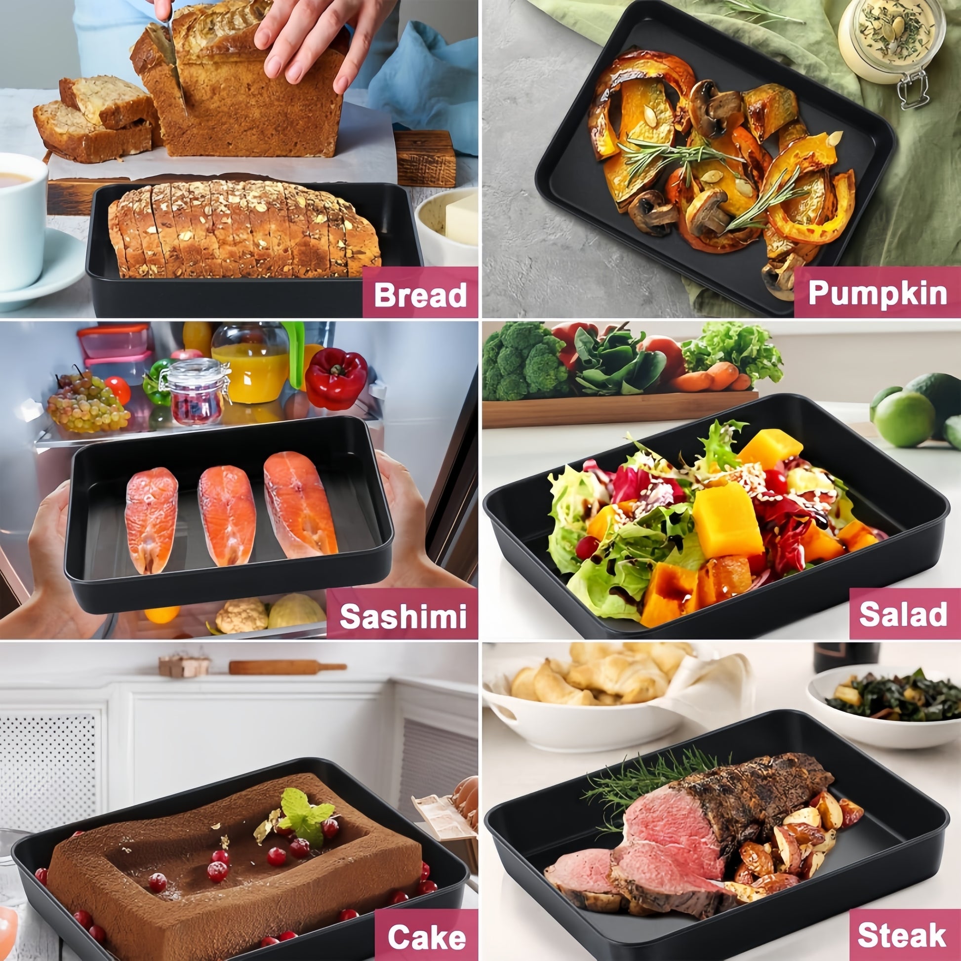 Нержавеющая сталь, антипригарная форма для запекания доступна в 3 размерах. Прочная, легкая в очистке, устойчивая к ржавчине, подходит для духовки и морозильника. Черная прямоугольная посуда для выпечки для домашнего использования.