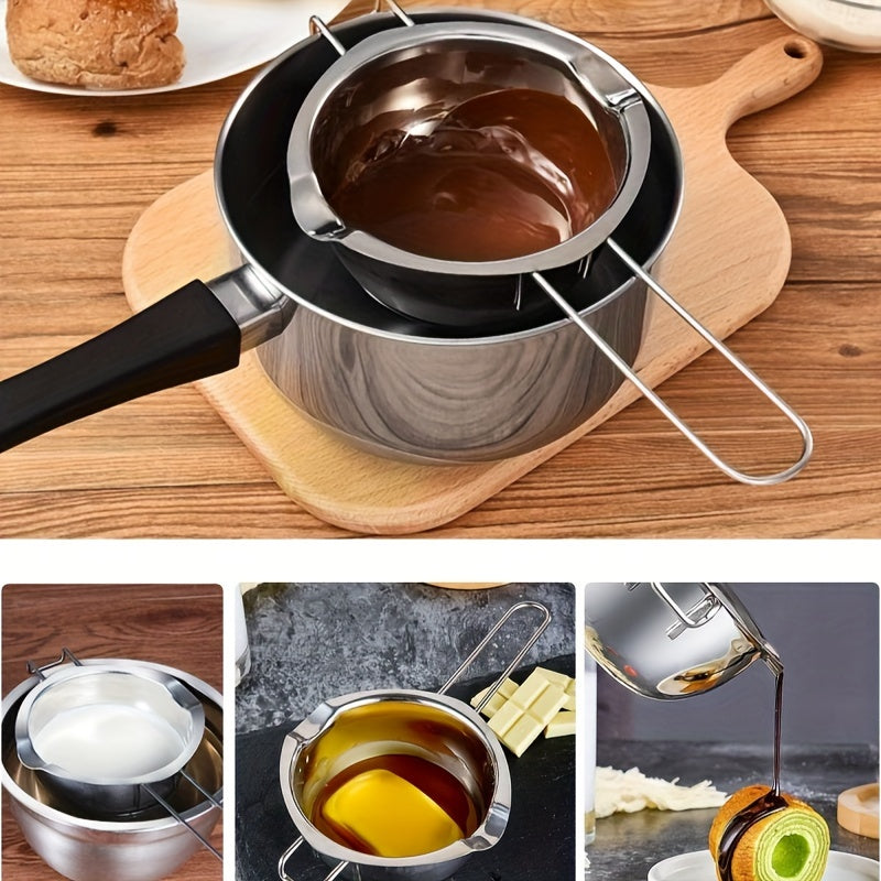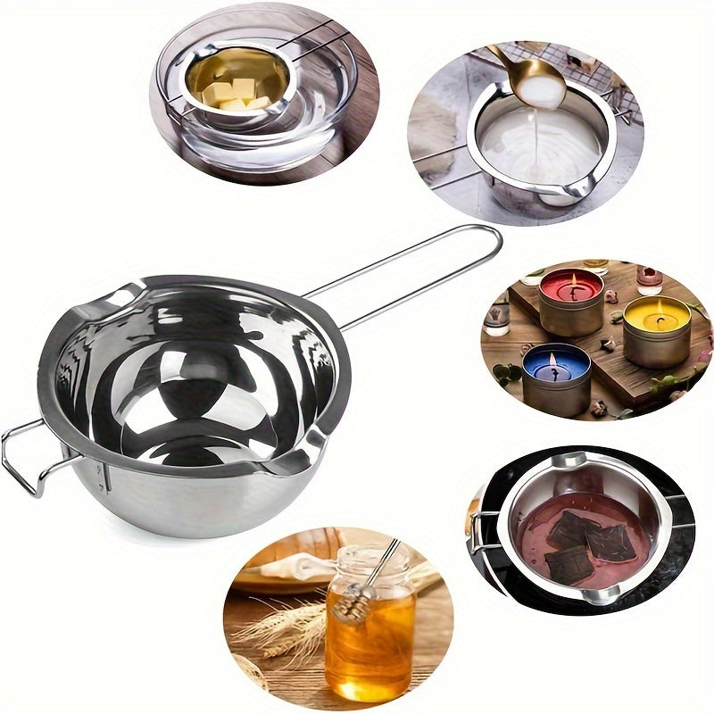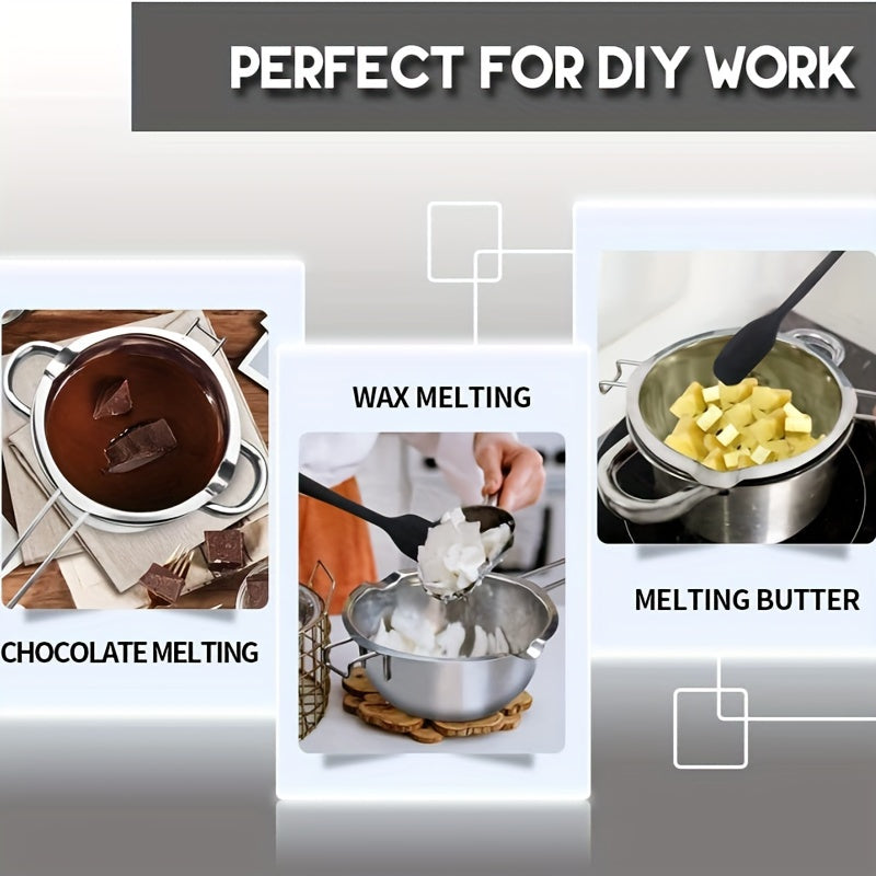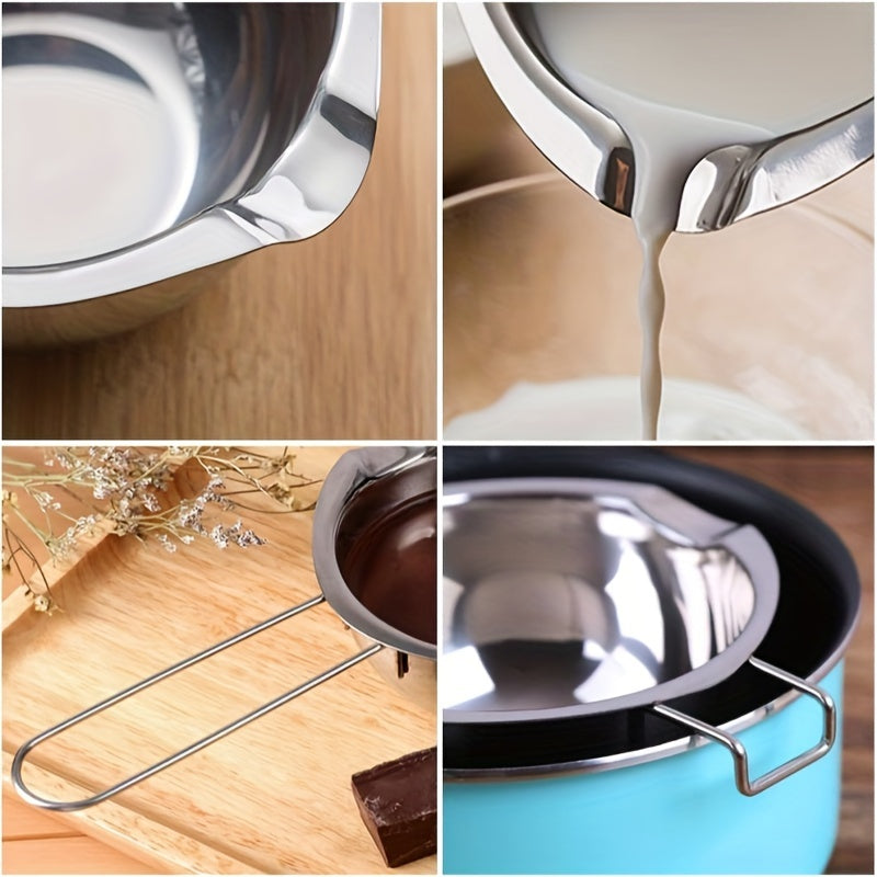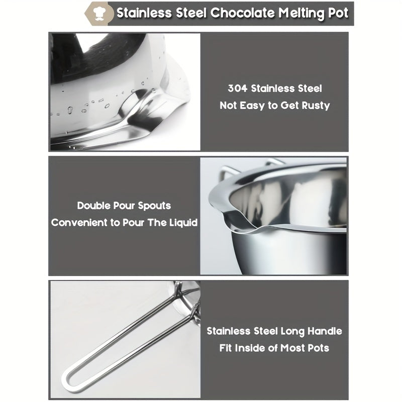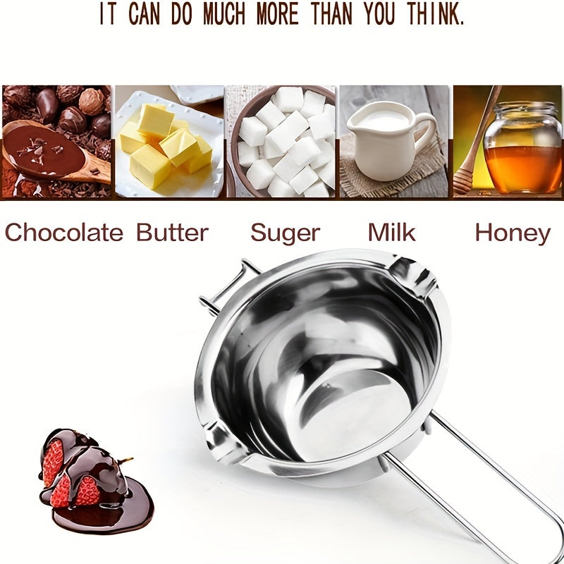 Нержавеющая стальная кастрюля с двойной ручкой для растапливания шоколада, масла и сыра. Отлично подходит для растапливания конфет и свечей, нагреваемая водой или воском.