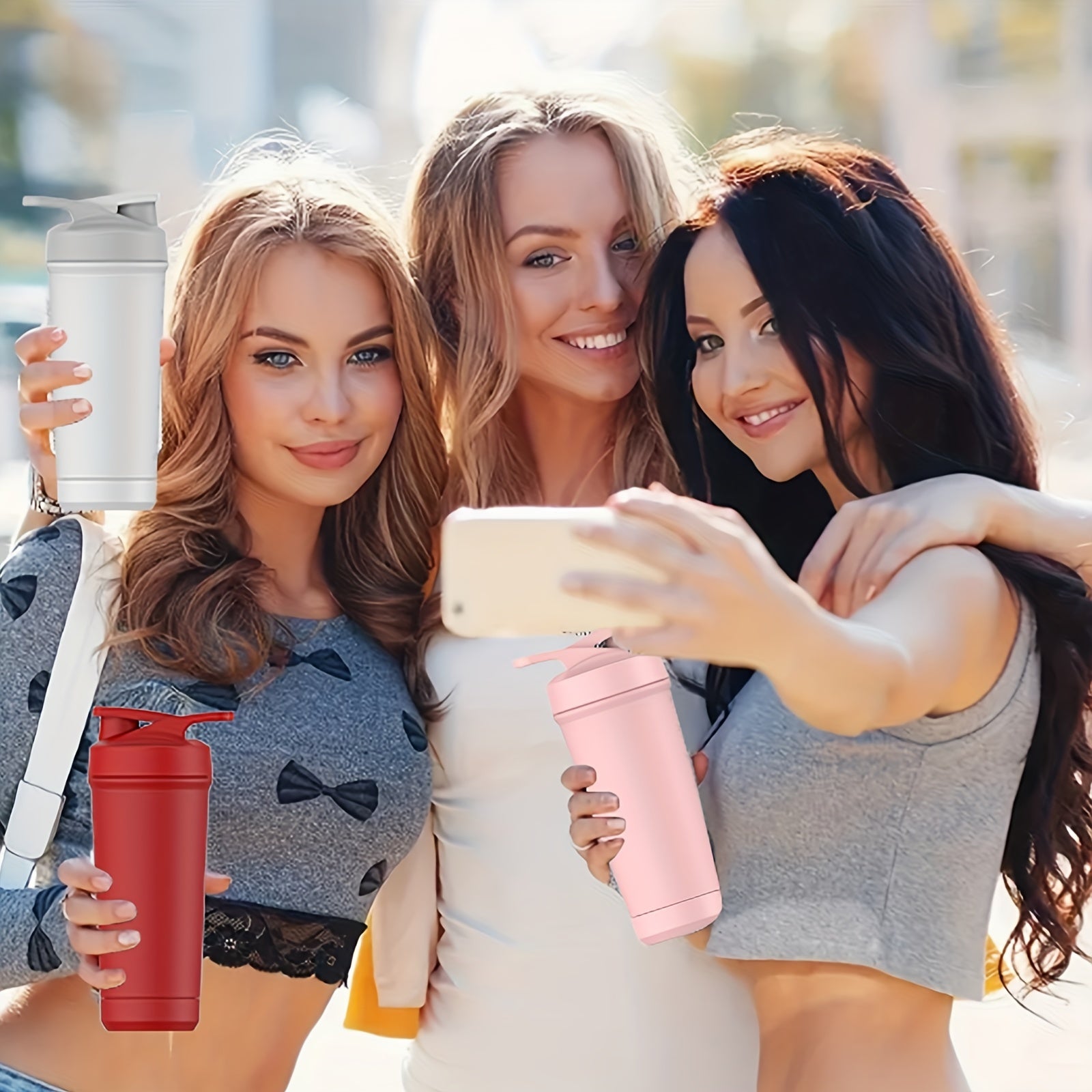 Нержавеющая стальная бутылка для протеиновых коктейлей (27 унций) с съемным миксером. Без BPA, легко чистится и портативна для тренажерного зала и спорта.