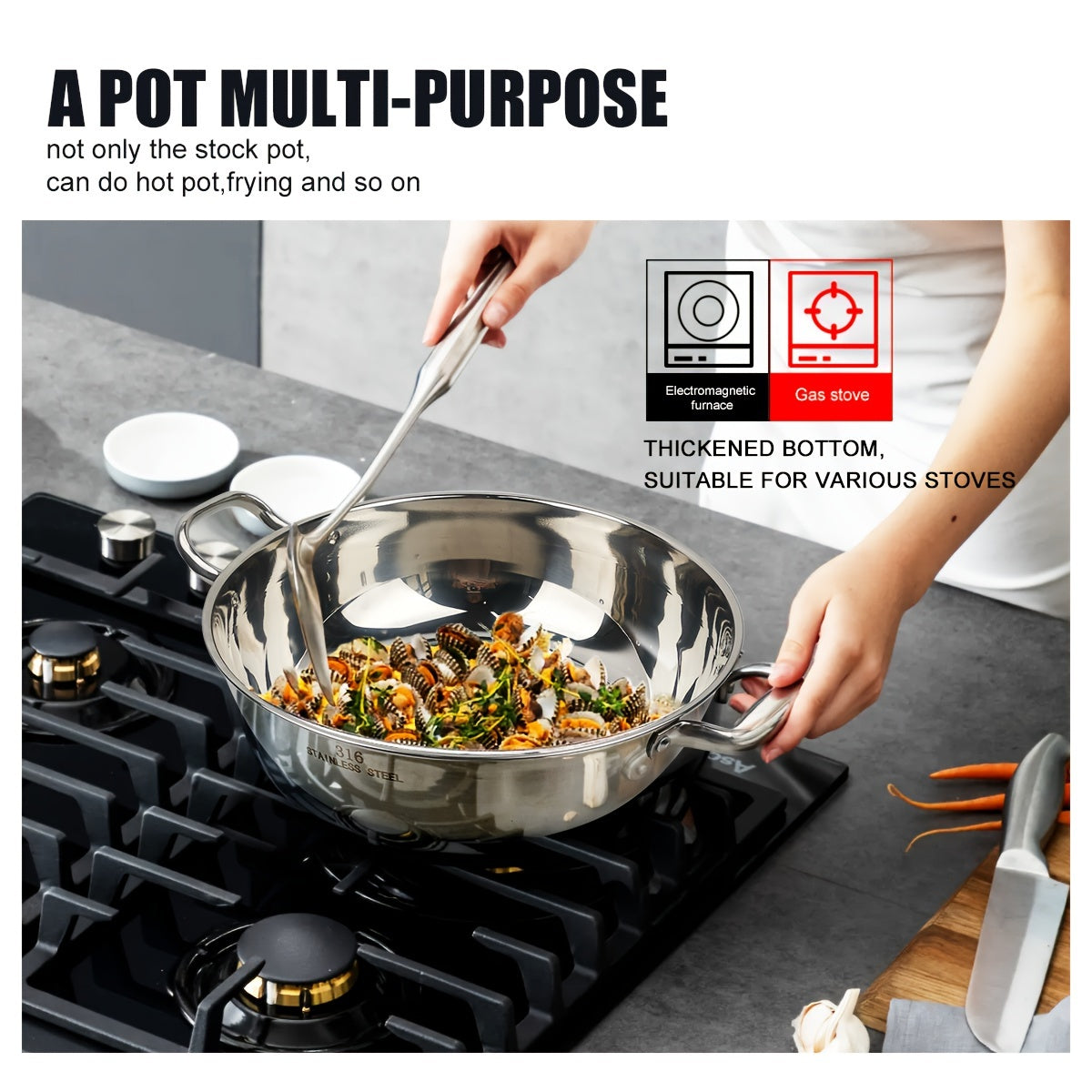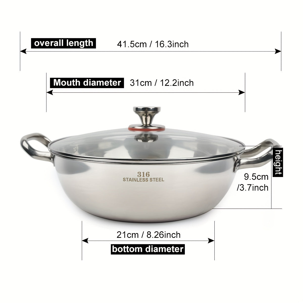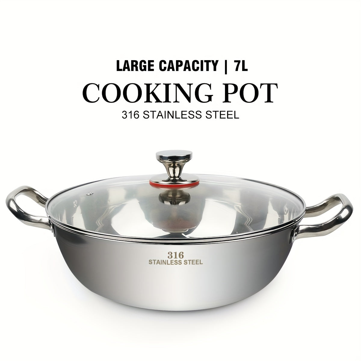 Нержавеющая стальная кастрюля для супа с стеклянной крышкой, большой объем, быстрое нагревание, подходит для всех плит, прочная, легкая в уходе - необходимый предмет кухонной посуды
