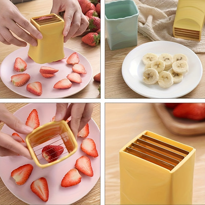 Нержавеющая сталь для нарезки клубники с пластиковой ручкой. Идеально подходит для нарезки фруктов и овощей на кухне. Прочный и современный инструмент.