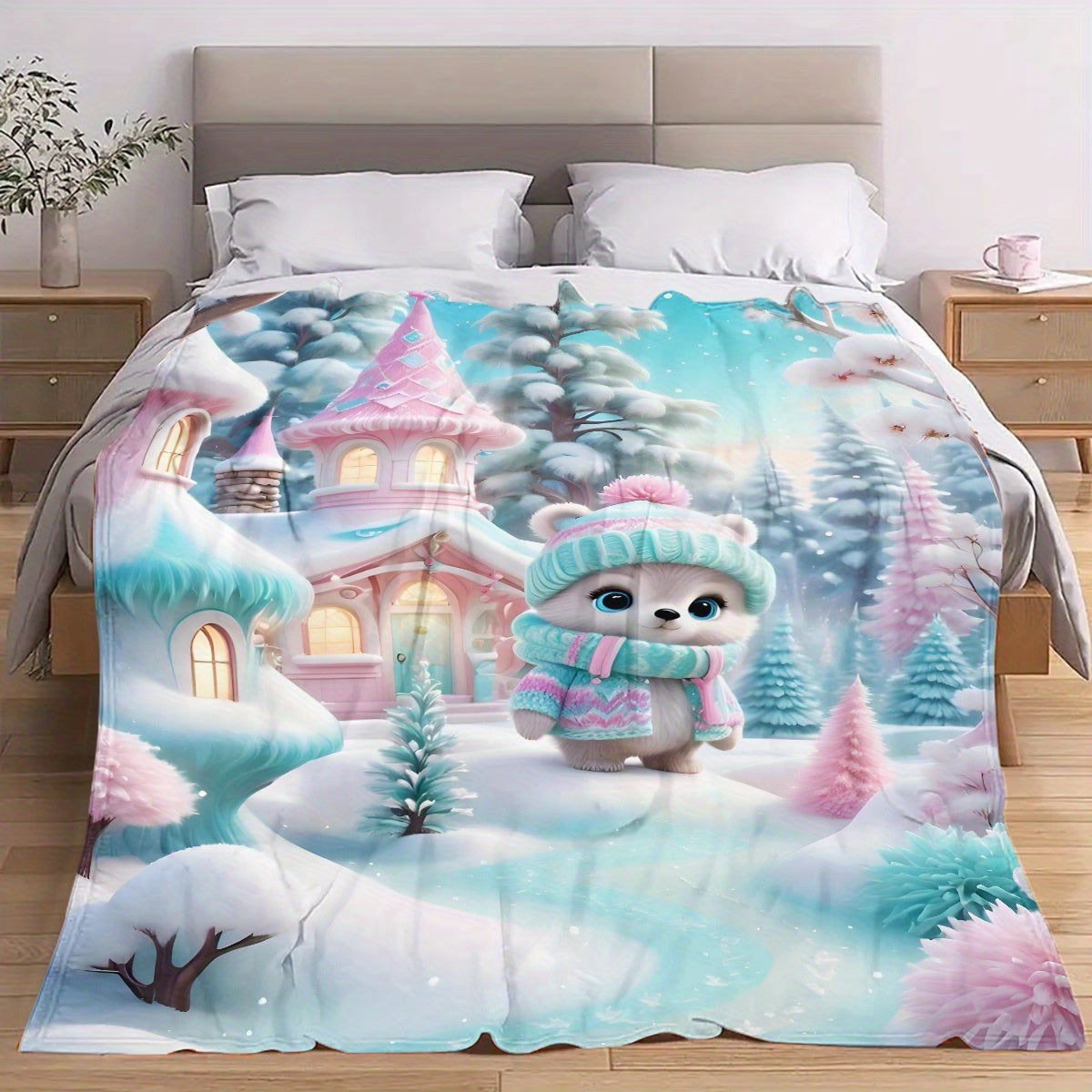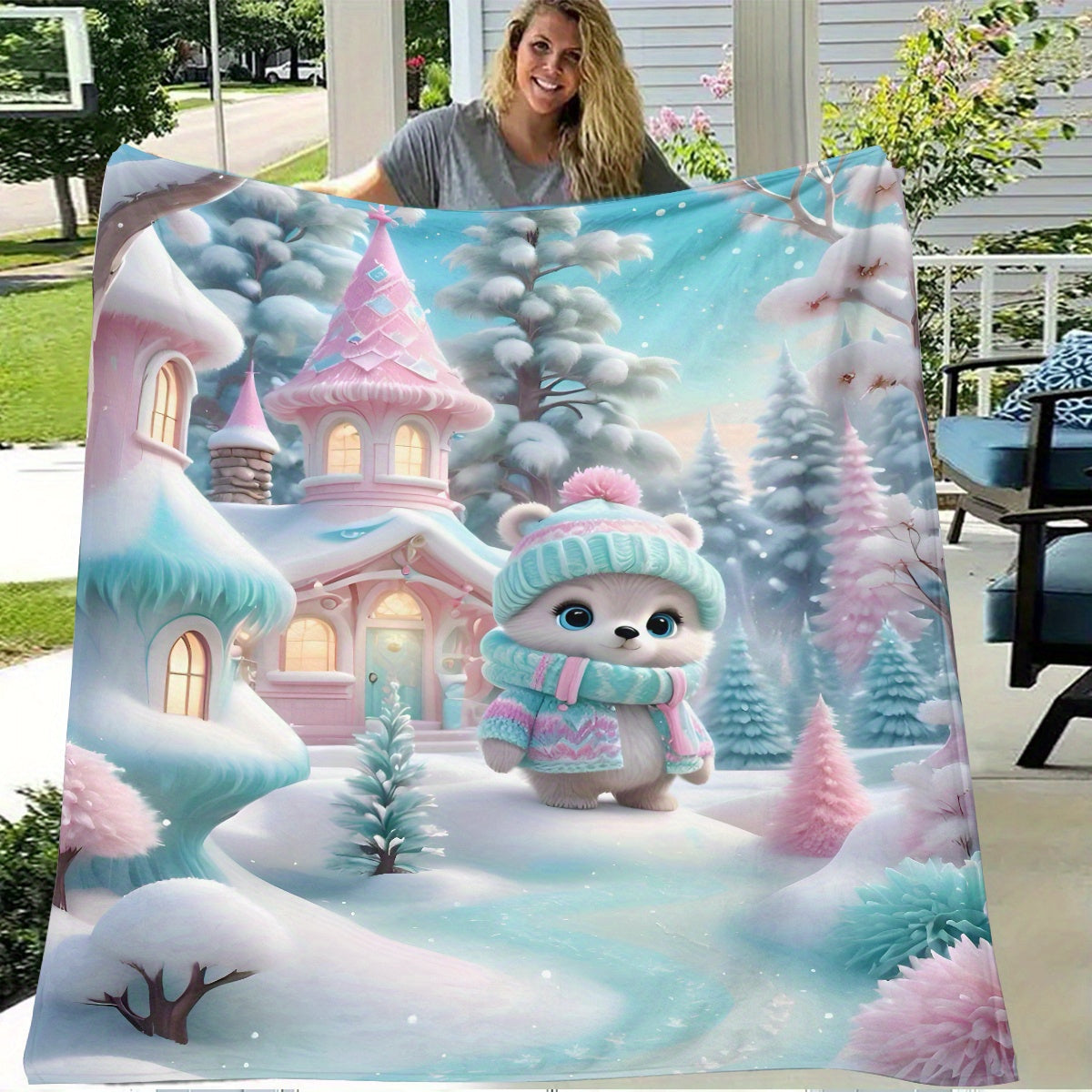 Оставайтесь в тепле и уюте с нашим зимним одеялом из фланели с дизайном милого медведя и сказочного домика. Это одеяло мягкое, теплое и легкое, идеально подходит для использования на диване, кровати, во время путешествий, кемпинга или в вашей гостиной.