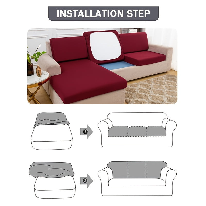 Натяните чехол на диван, чтобы защитить подушки в гостиной.