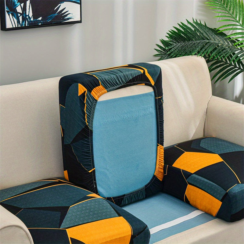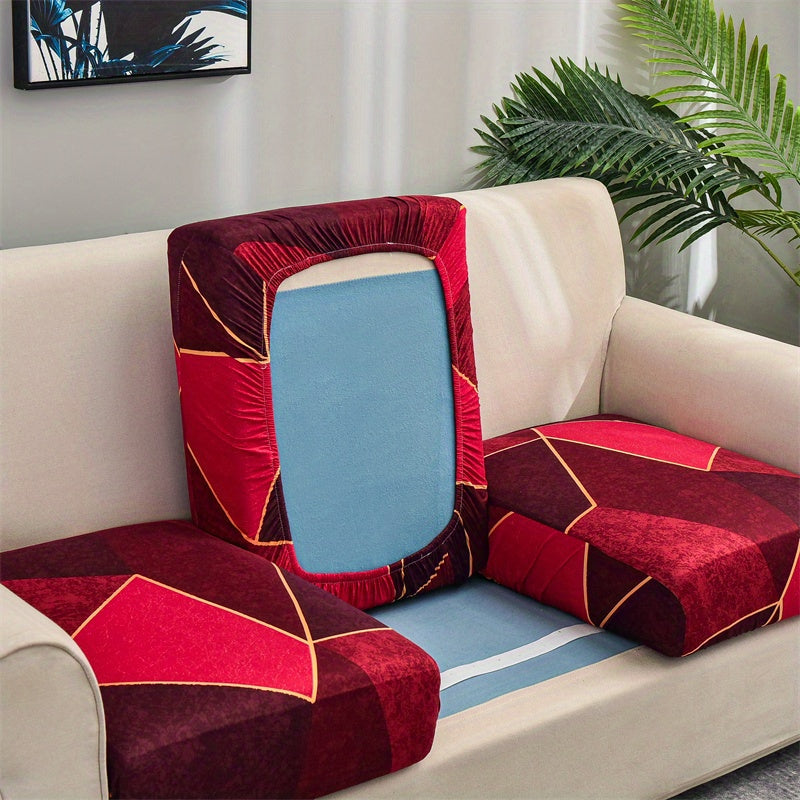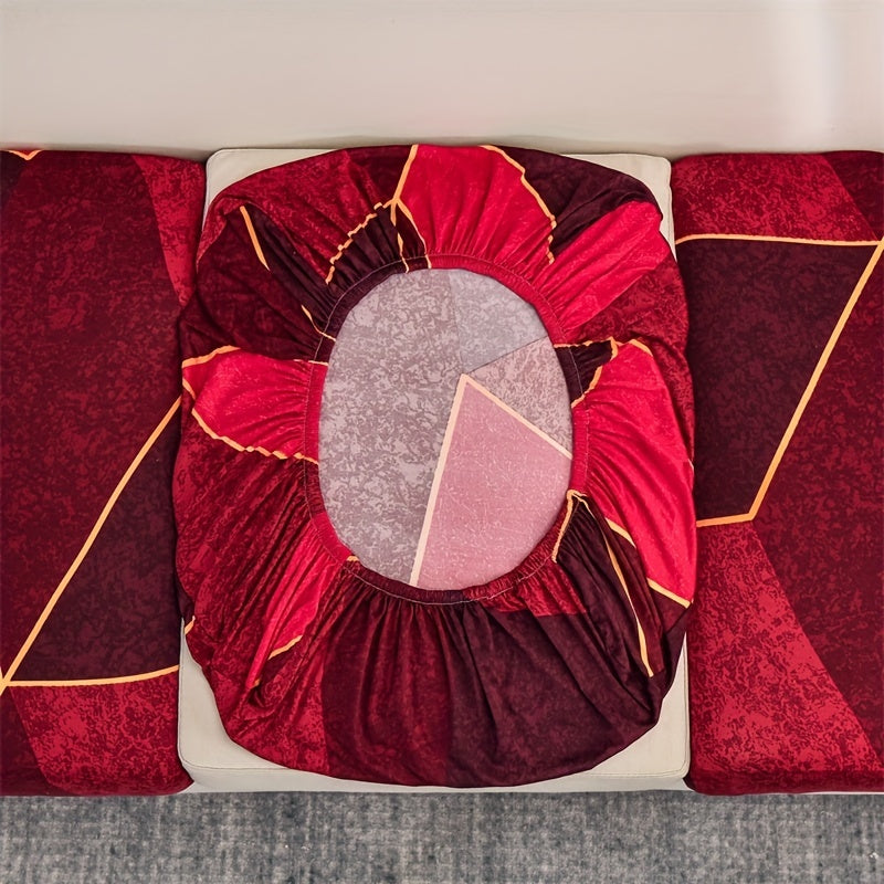 Чехол на растяжку для дивана с геометрическим красным и синим принтом, эластичный, моется в машине, современный домашний декор