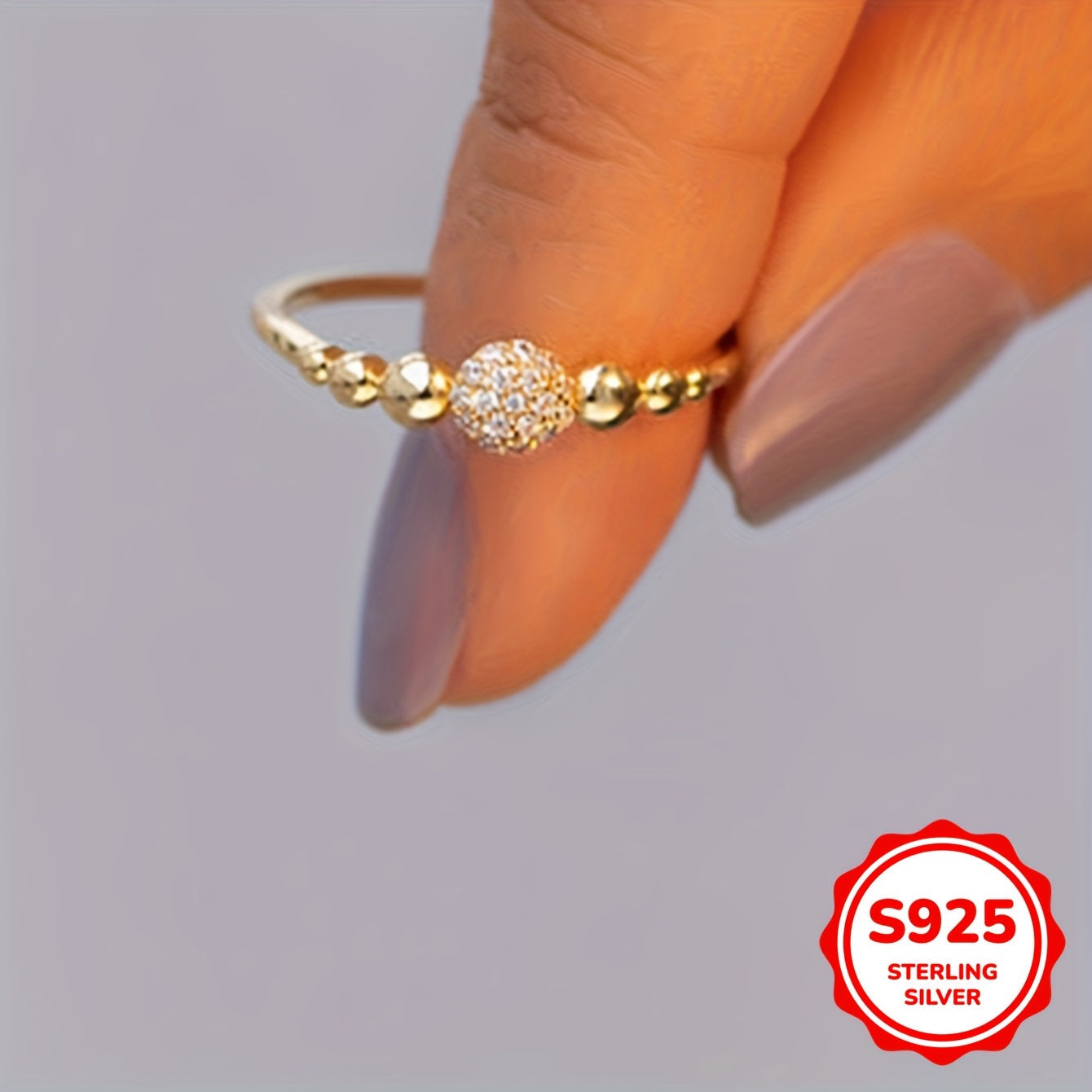 Потрясающее кольцо из стерлингового серебра S925 весом 1,5 г в форме круглого шара, украшенное синтетическим цирконием, демонстрирующее стильный и модный европейский и американский дизайн - обязательный аксессуар для женщин.