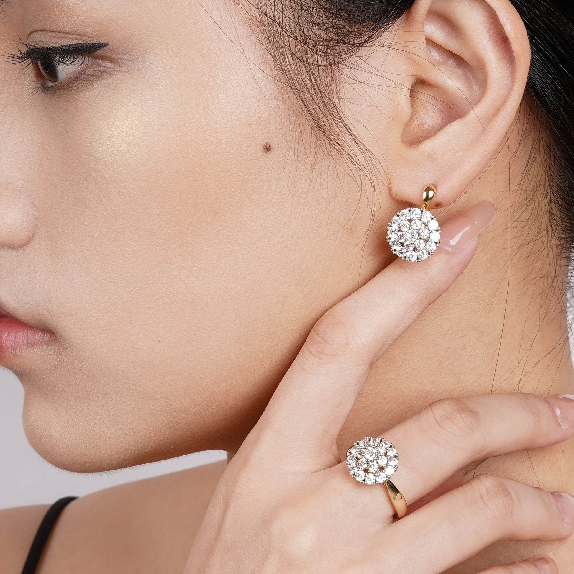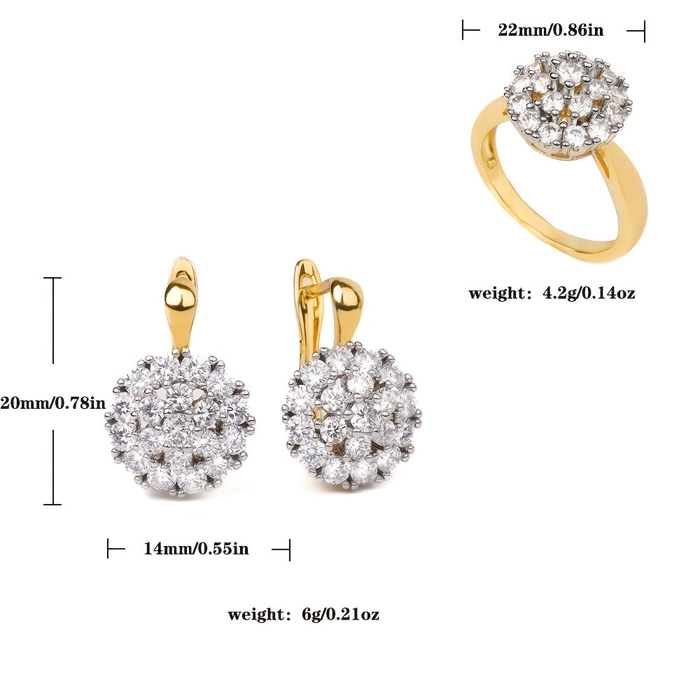 Сногсшибательный комплект ювелирных изделий из меди с 18-каратным золотым покрытием, включающий серьги и кольцо с синтетическим цирконием, идеально подходит для вечеринок и подарков, вечный стиль для любого случая.