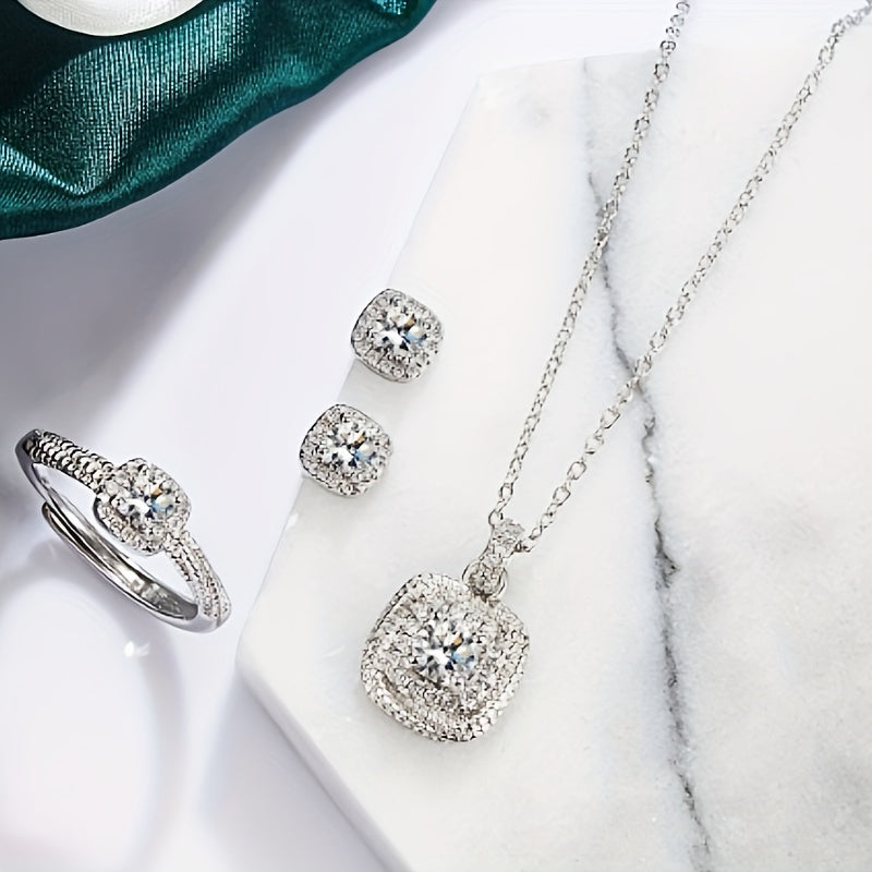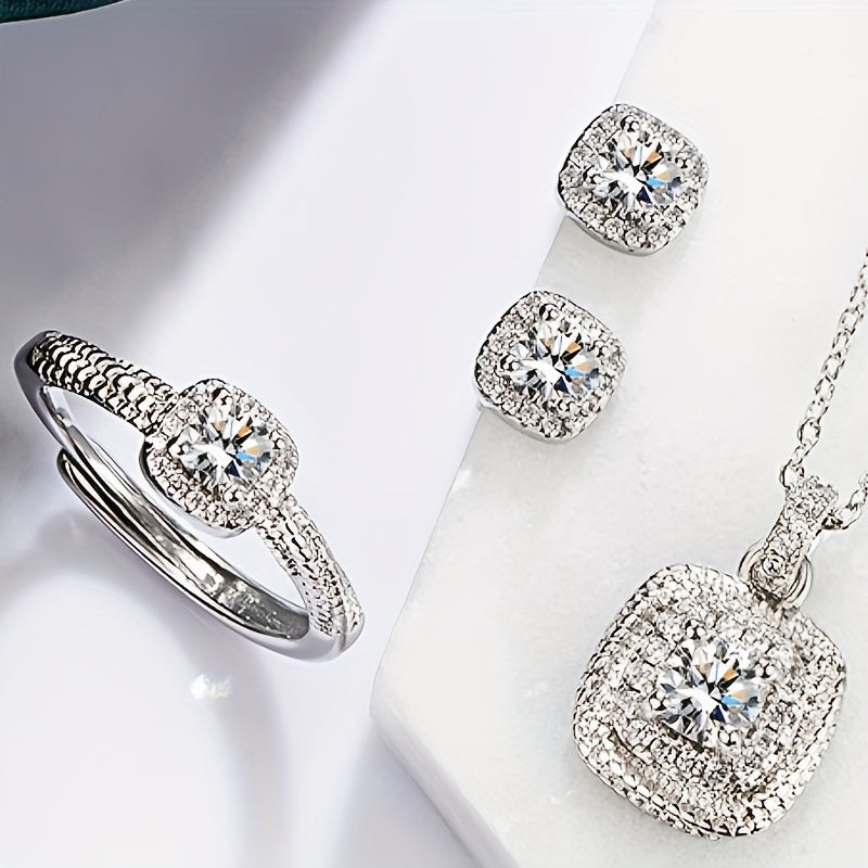 Потрясающий бохо-шик комплект ювелирных изделий из серебра 925 пробы с моиссанитом - в комплект входят кольцо, ожерелье и серьги для женщин | Идеально для повседневной носки или в качестве продуманного подарка