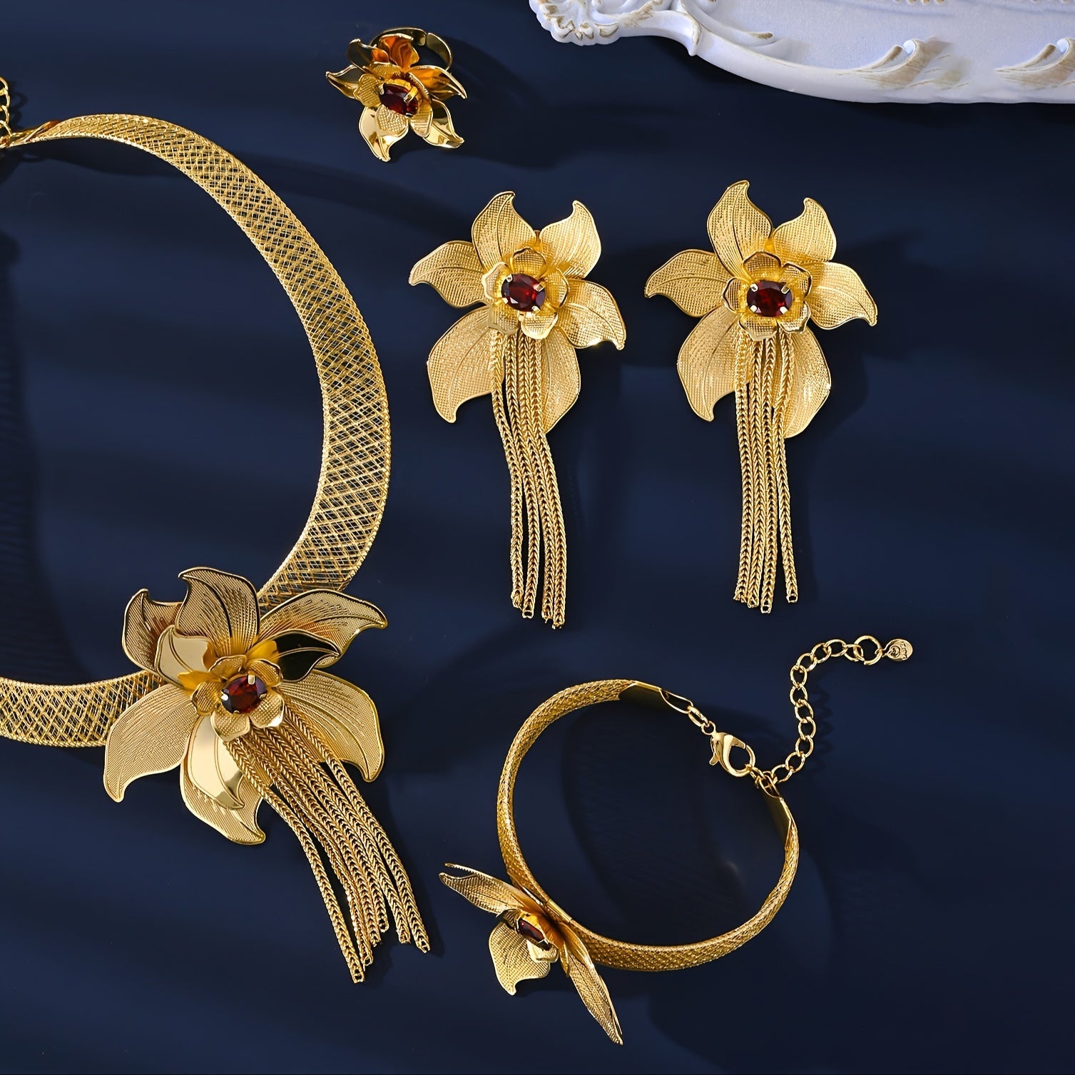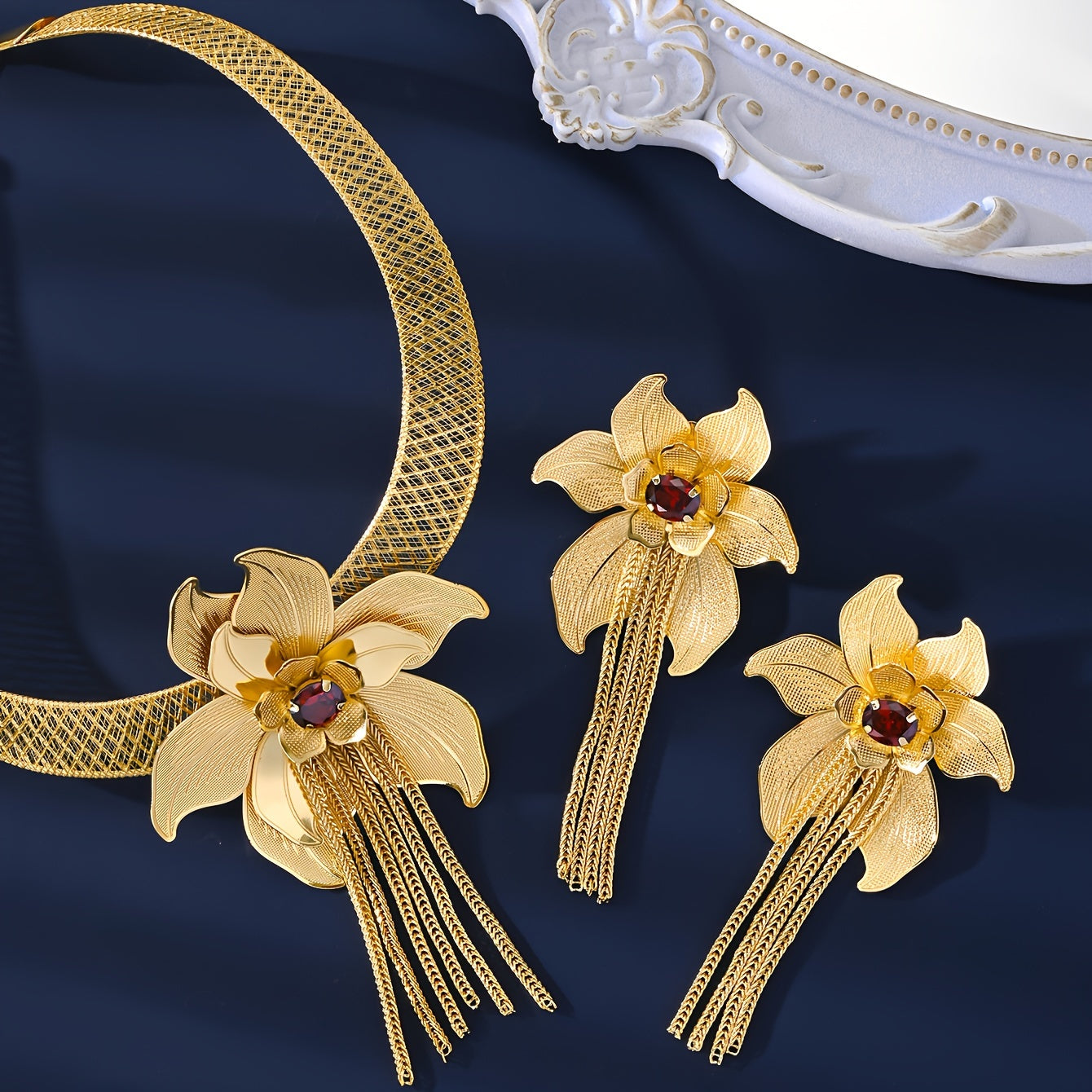 Потрясающий комплект ювелирных изделий из меди с цветочным дизайном от MEIZ - Идеален для особых случаев и праздников, включает в себя ожерелье, браслет и серьги для женщин