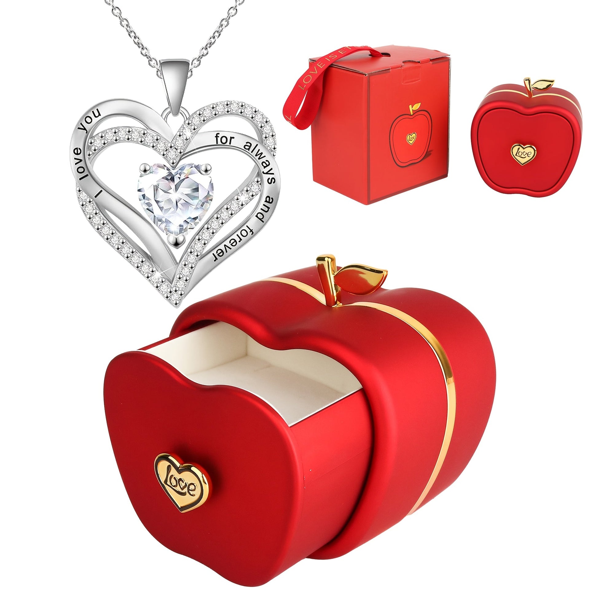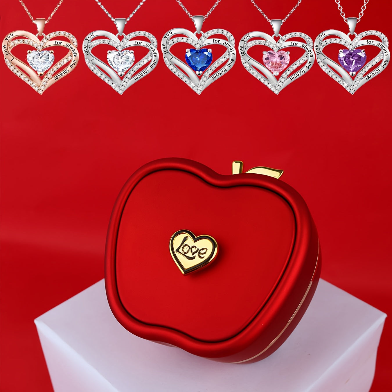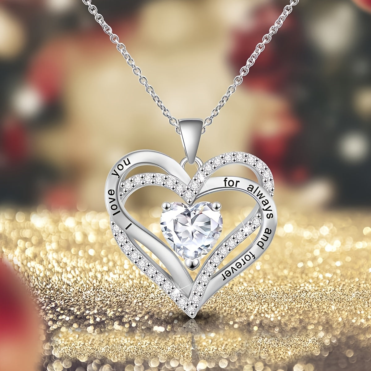 Кулон-двойное сердце из серебра, покрытый медью, синтетический цирконий, подарочная коробка, на День святого Валентина, Рождество
